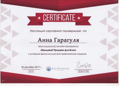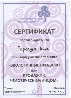 Університет імені Альфреда Нобеля, спеціаліст у галузі психології, Міжнародний інститут психоаналізу та системного консультування, Курси з арт-терапії для дорослих та дітей, курси з метафоричних карток у психологічному консультуванні, бізнес курси лідерство, командоутворення, тайм-менеджмент, економіка громадських організацій, мистецтво управлінської та позиційної боротьби, курс Психологічна допомога у кризових ситуаціях.