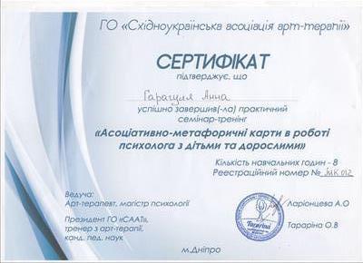 Асоціативні метафоричні карти в роботі психолога з дітьми та дорослими, 2018рік, 30 годин, м.Дніпро