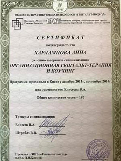 - Спеціалізація « Організаційна Гештальт-терапія та коучинг»