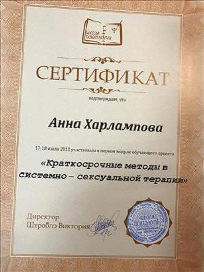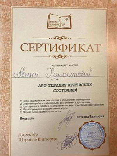 Доброго дня, давайте знайомитися, я - Харлампова Анна - практикуючий психолог, акредитований гештальт терапевт, супервізор, щаслива дружина та мама трьох досить дорослих дітей. Теми, з якими я працюю: дитяча та підліткова психологія, стосунки в сім'ї та в парі, складні емоційні стани, кризи та травми, консультація організацій. Дуже люблю працювати з групами, є сертифікованим груповим терапевтом. У своїй роботі багато спираюся на тіло та тілесність. Для мене психологія – це не тільки професія, – це захоплення та зростання, яке ніколи не закінчується. Ще отримуючи освіту психолога, зрозуміла, що для повноцінної роботи з клієнтом базової освіти мало, і з цікавістю поринула в програму МДІ з підготовки гештальт-терапевтів, пройшла достатню кількість спеціалізацій інституту, програму 3-го ступеня "Удосконалення у професії", програму III ступеня Французького Інституту Гештальт Терапії (IFGT). Регулярно приймаю участь у спеціалізованих конференціях та інтенсивах. Буду рада допомогти Вам :)