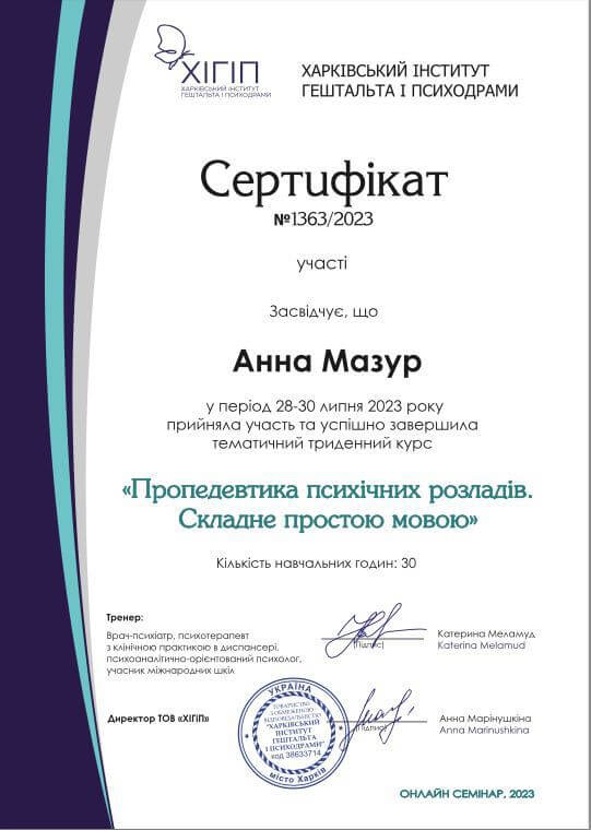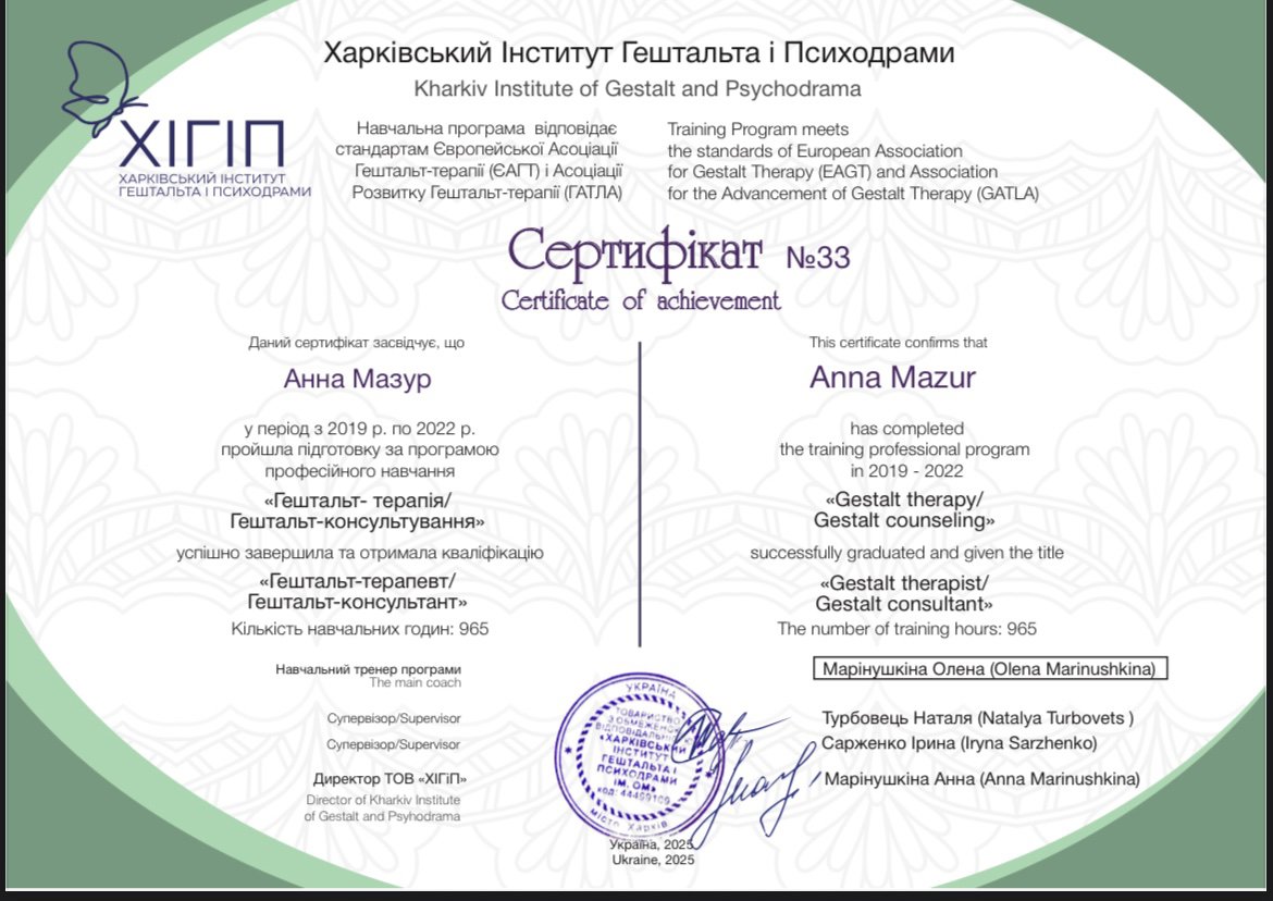 Харківський інститут гештальту та психодрами 2022 Гештальт-терапевт
