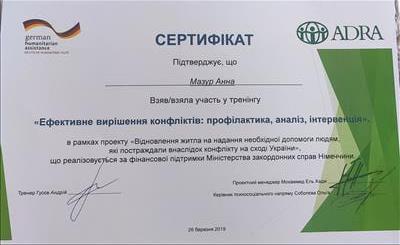 • Тренінг «Ефективне вирішення конфліктів: профілактика, аналіз, інтервенція» (2019р)