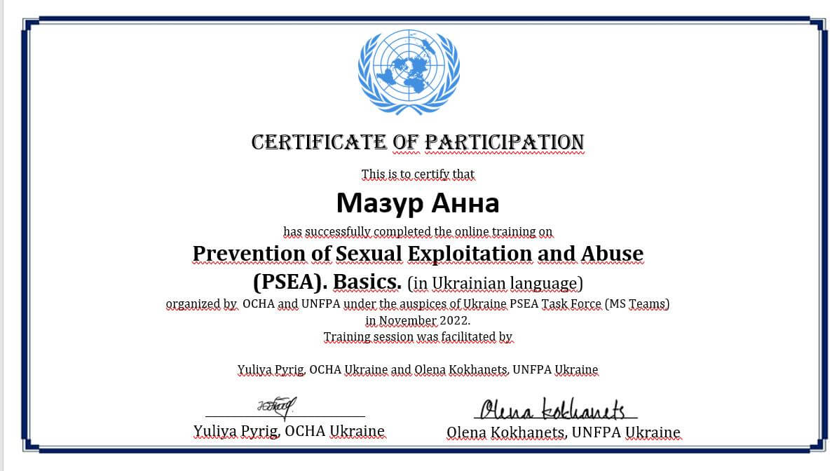 • Тренінг «Основи гуманітарної діяльності. Питання захисту (2019р)