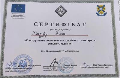 • Тренінг «Конструктивне подолання психологічних травм і криз» (2017р)