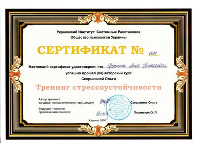 2010 рік - авторський курс Скорининої Ольги "Тренінг стресостійкості";