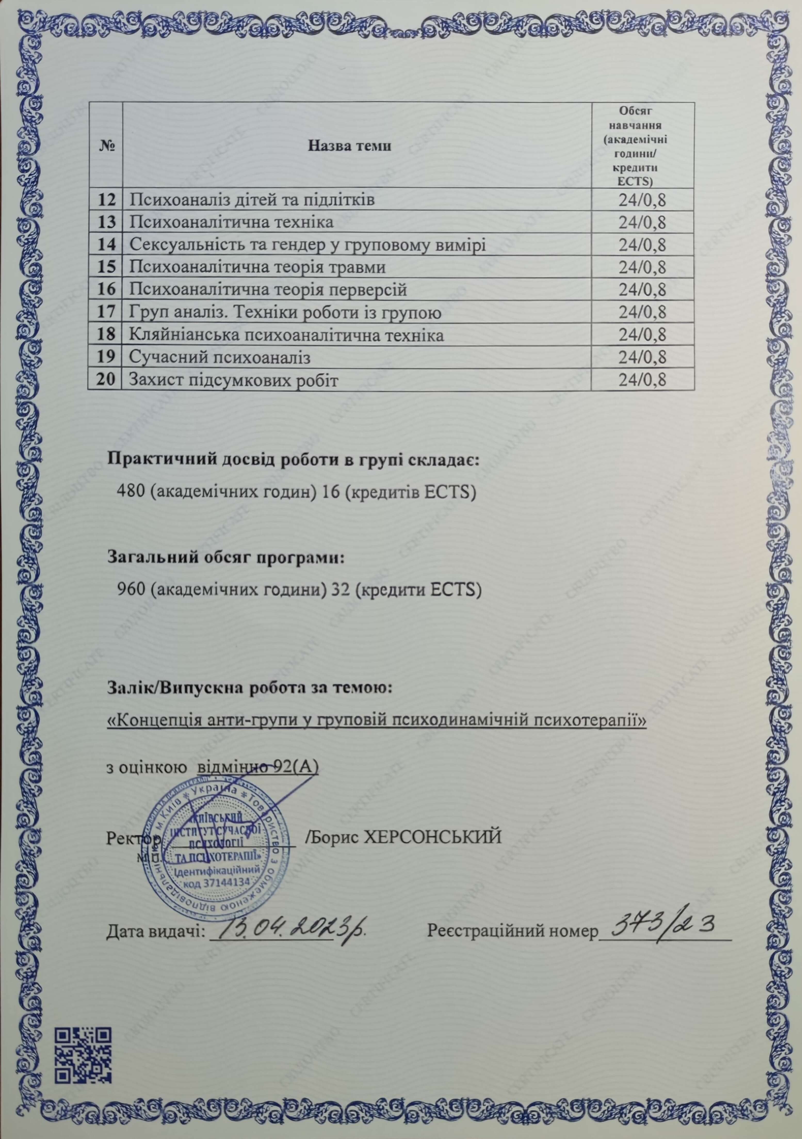 Київський інститут сучасної психології та психотерапії – Міжнародна школа групового психоаналізу.
