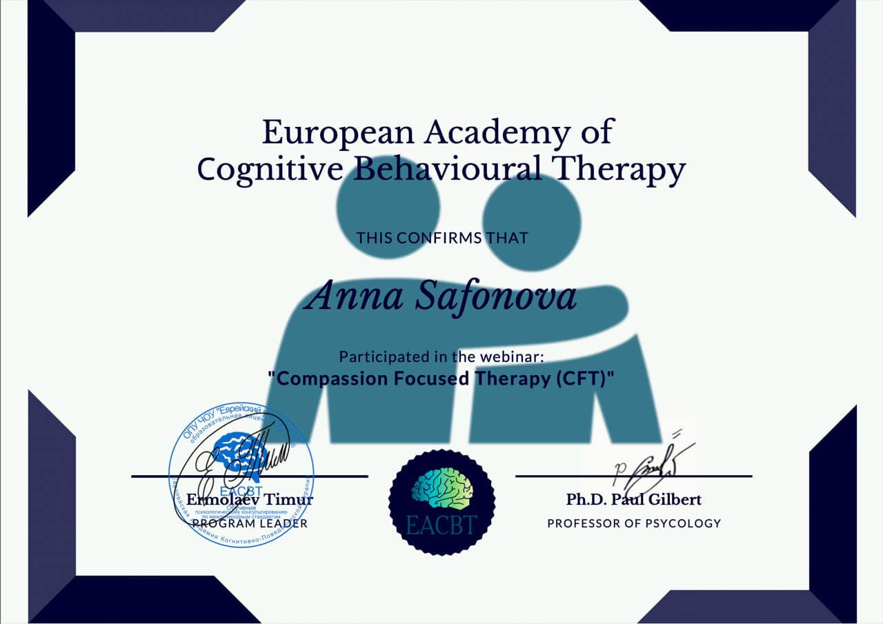 Здрастуйте, мене звуть Сафонова Ганна, я практикуючий, дипломований психолог.
