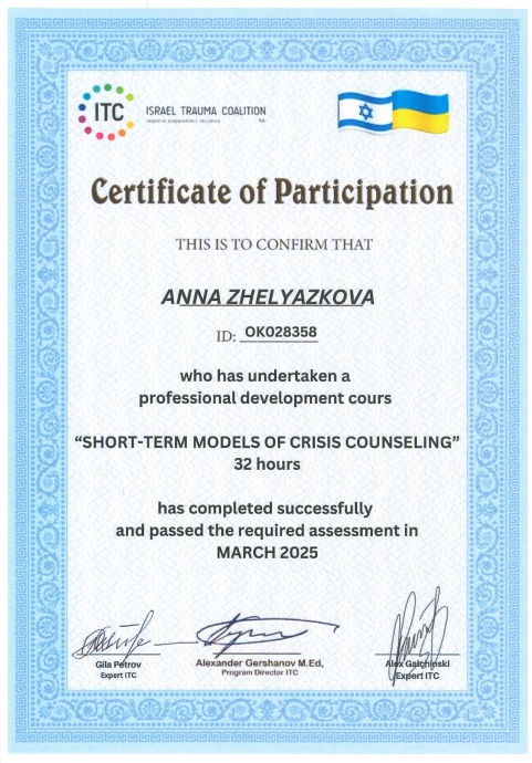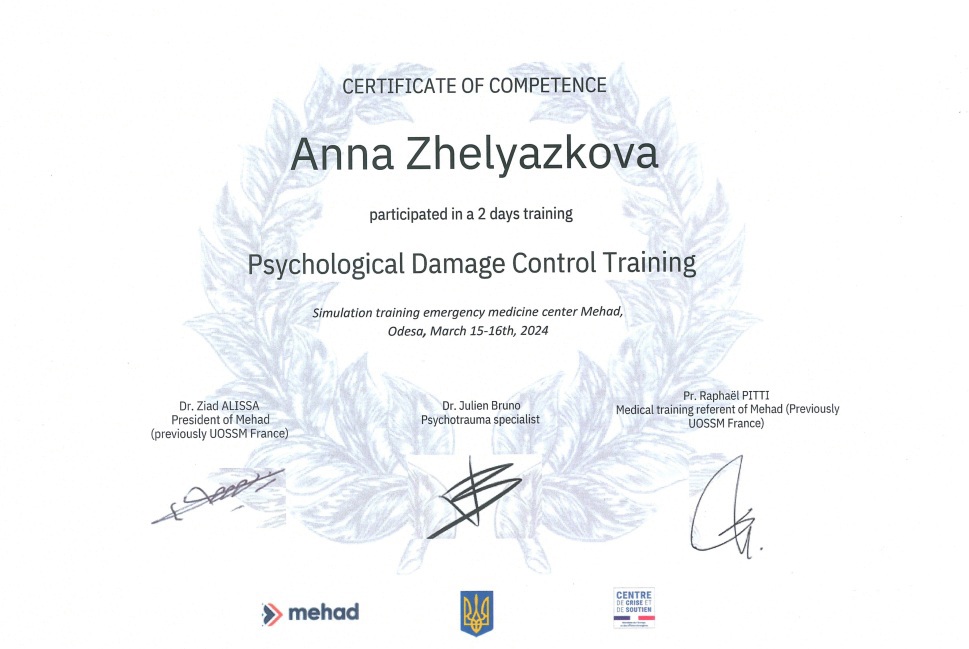 Магістр клінічної психології та реабілітації (державний виш, з відзнакою).