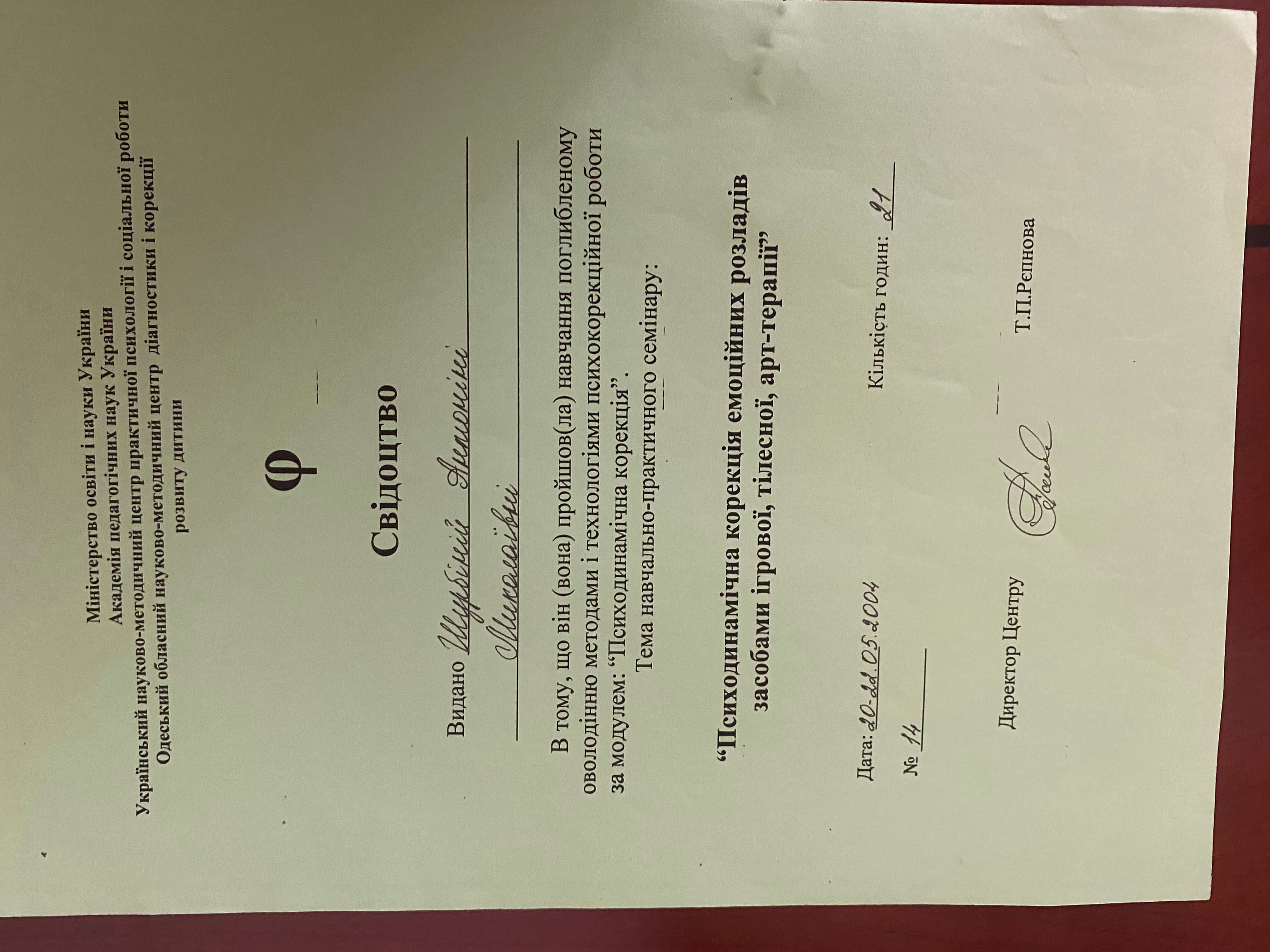 20-22.05.2004, Кількість годин - 21
