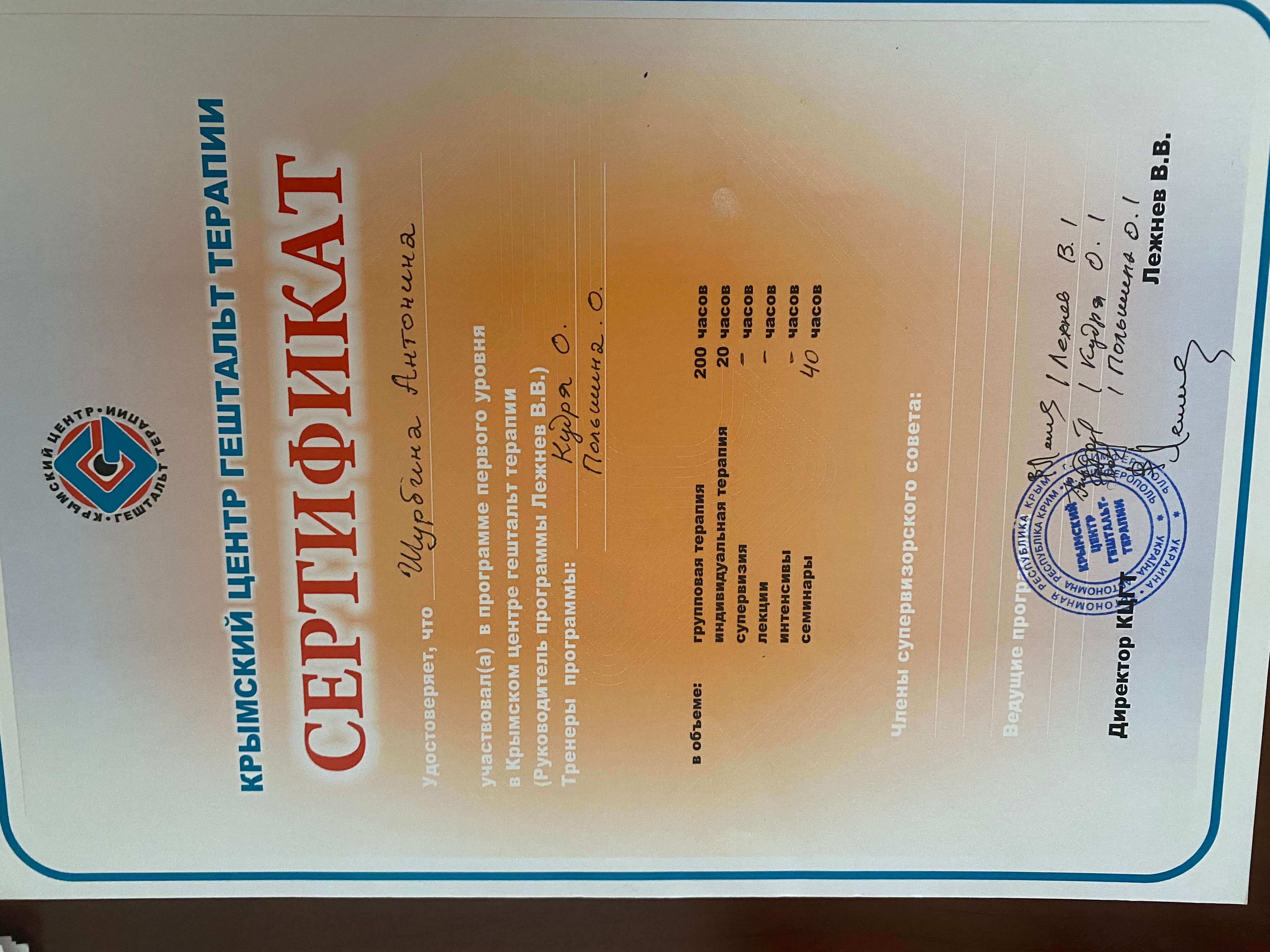 программа первого уровня в Крымском центре гештальт терапии