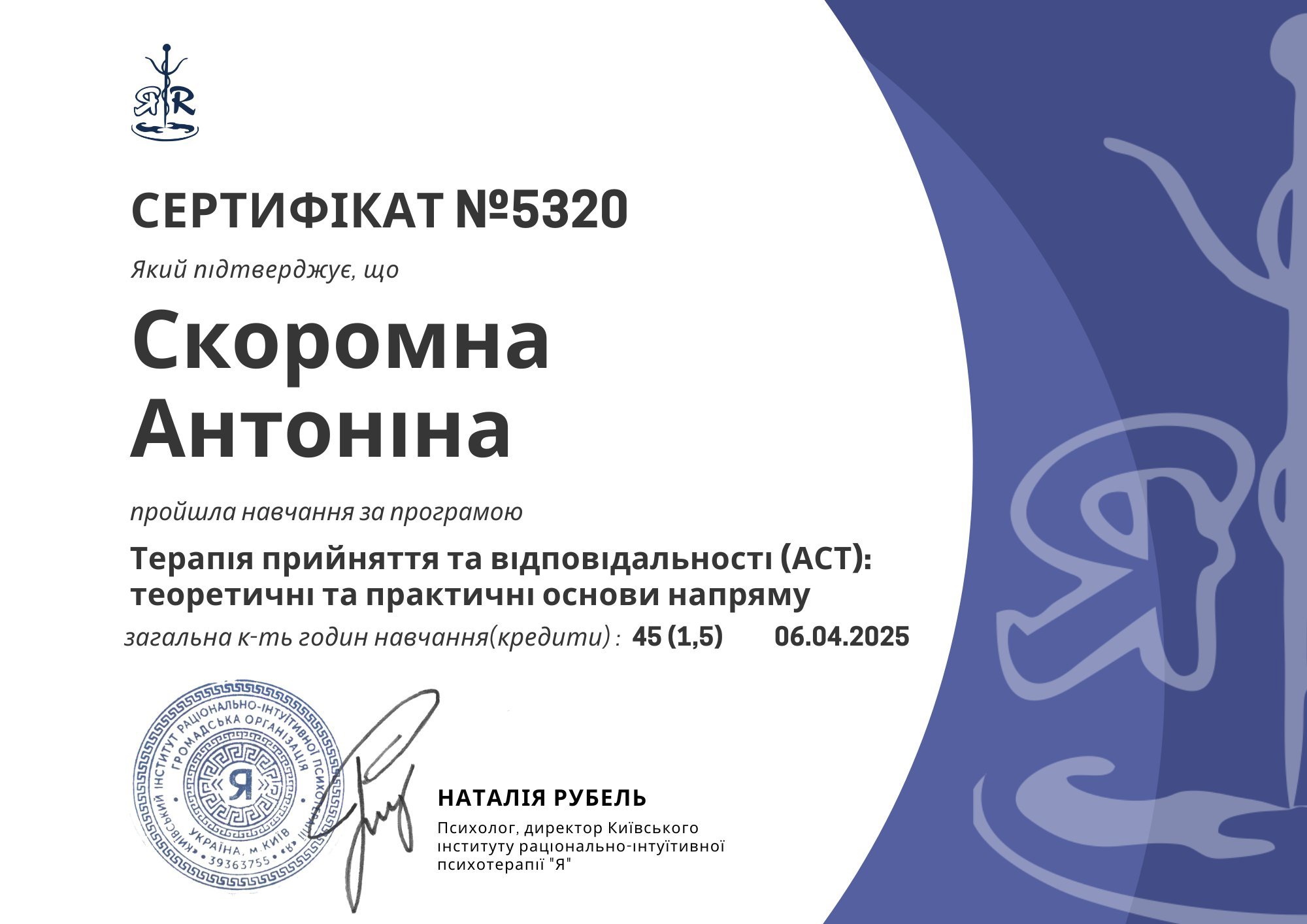 До терапії я жила в системі чужих орієнтирів. Цілі, які здавались моїми, але були складені з очікувань інших. Рішення, які "правильні" за якимось зовнішнім стандартом. Підтримка була для всіх навколо, тільки не для себе.