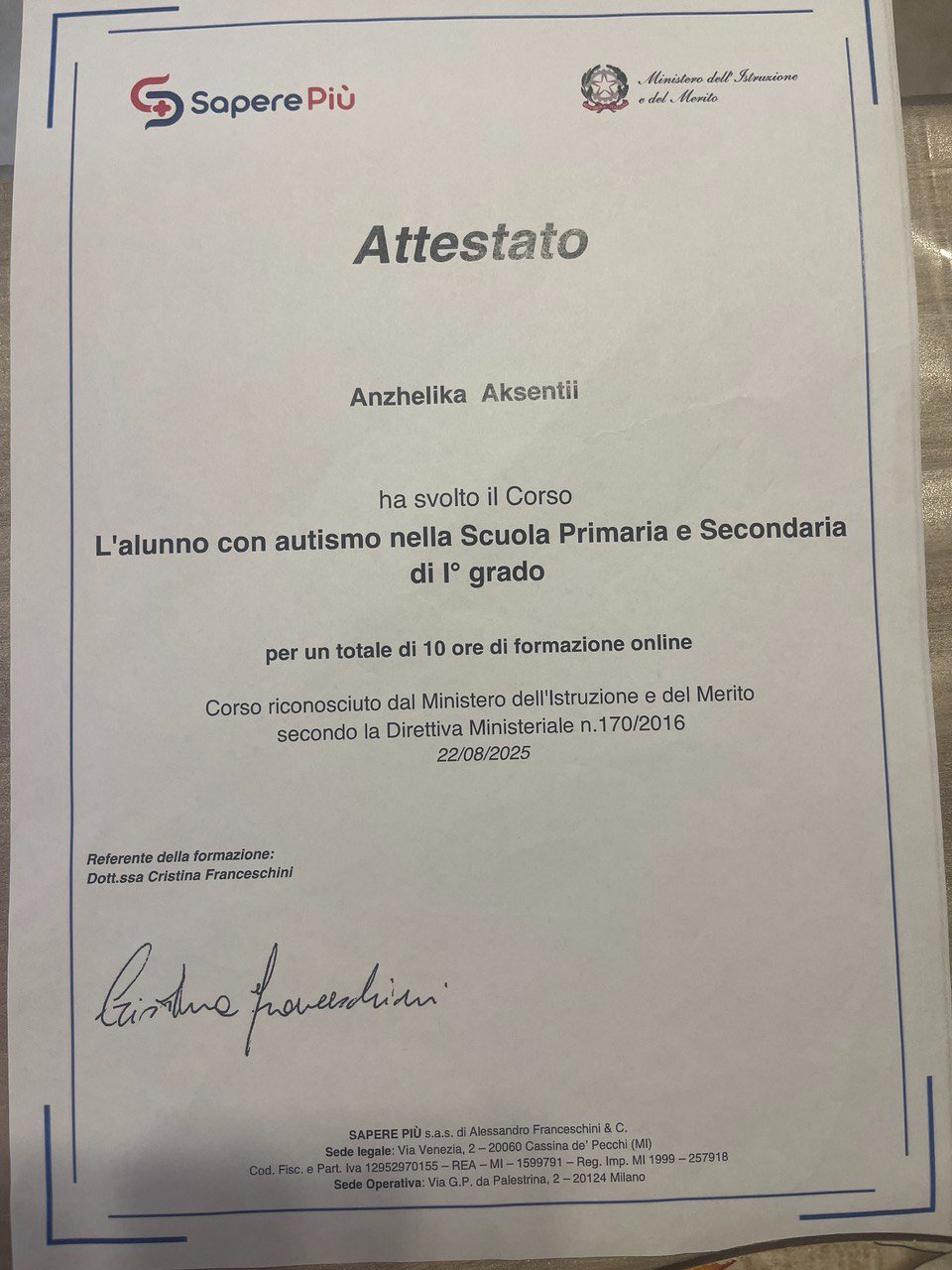 З 2018 року: психолог, тренер особистісного зростання, провідна психологічна група (підлітки, дорослі). Школа модельного агентства «Арт-Подіум». Маразліївська 1\20.
