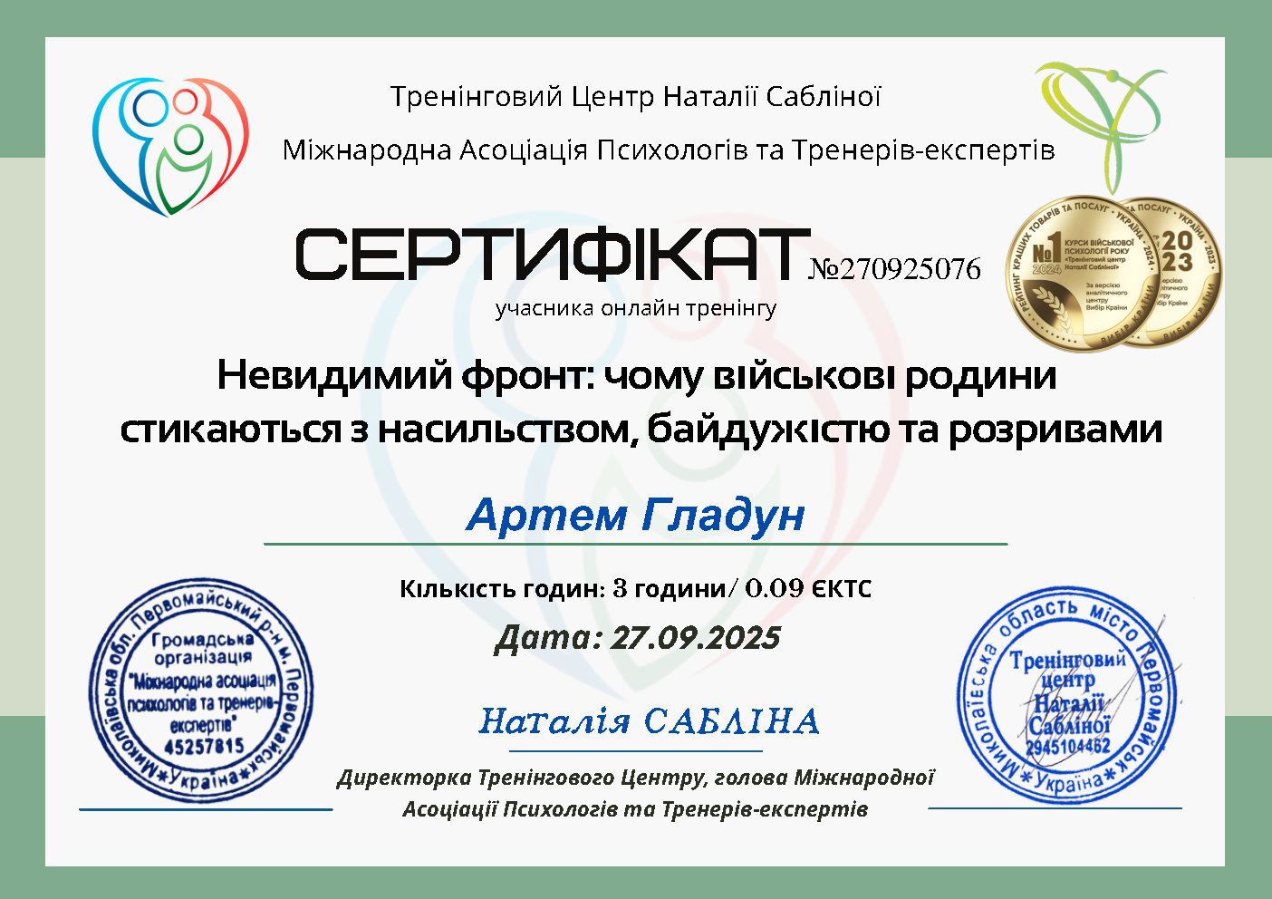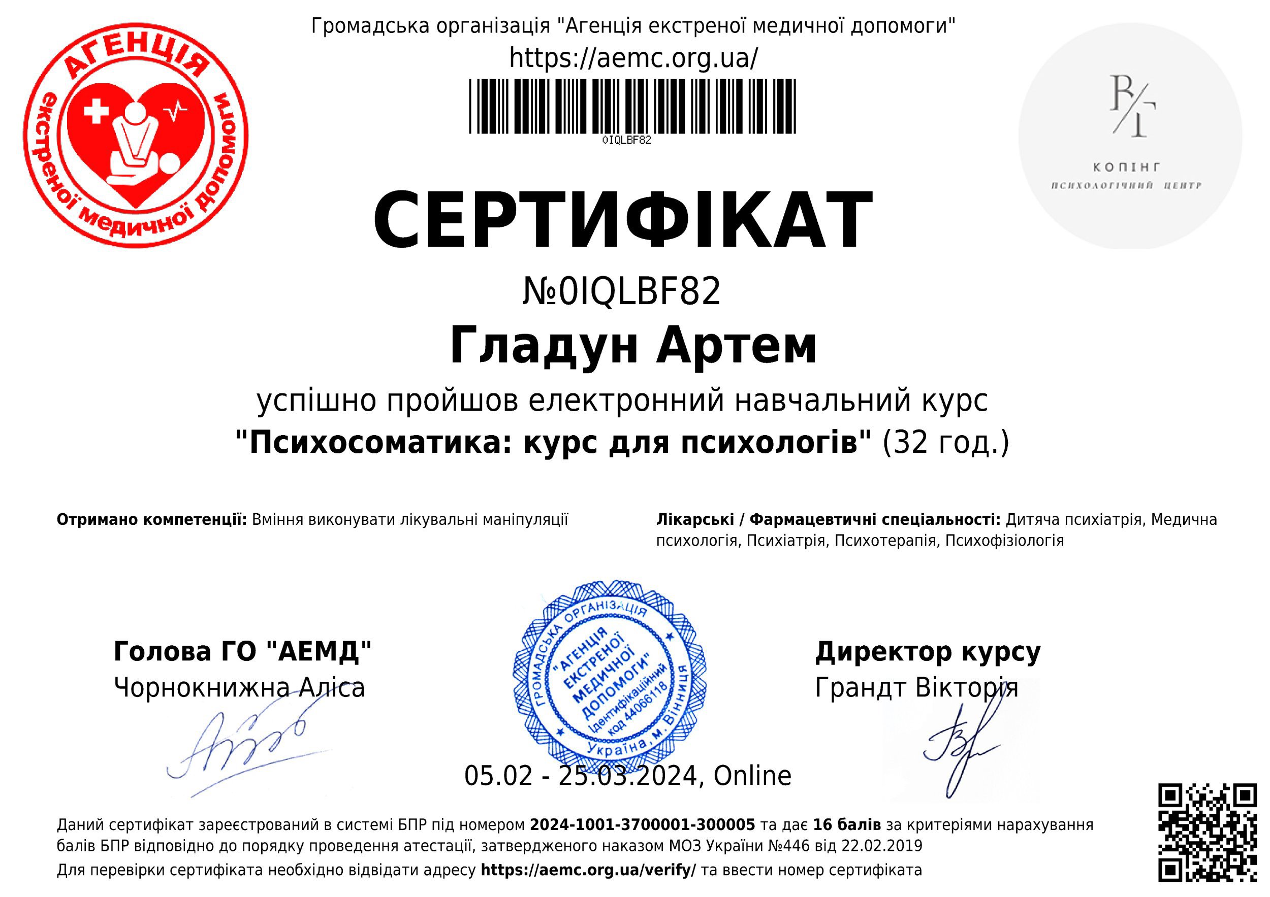 Сертифікати: