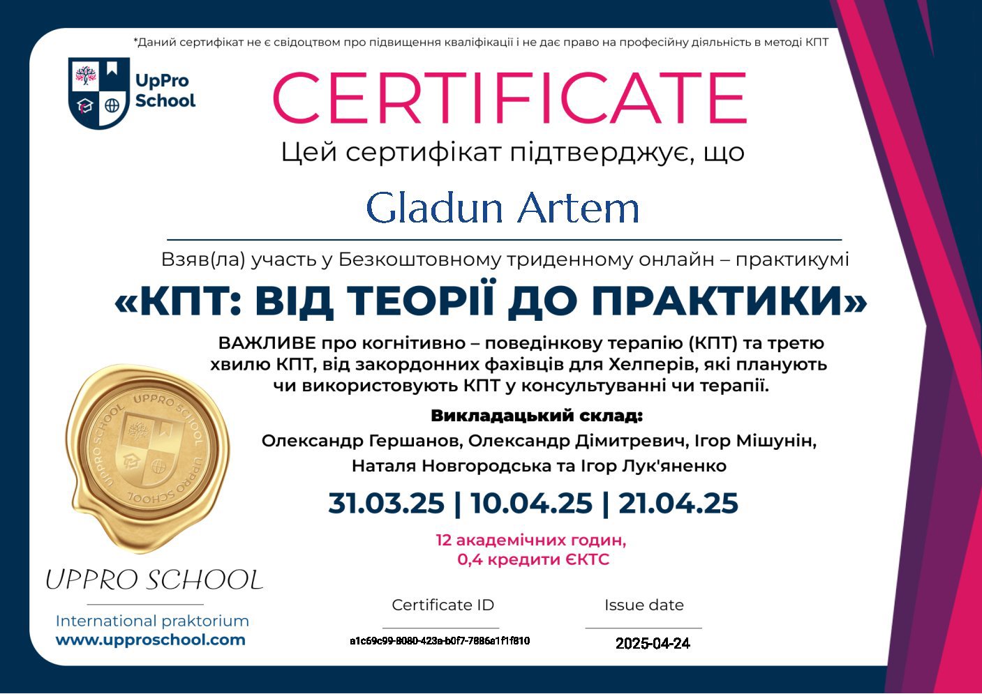 Гештальт-терапія перший рівень, Київський Гештальт Університет