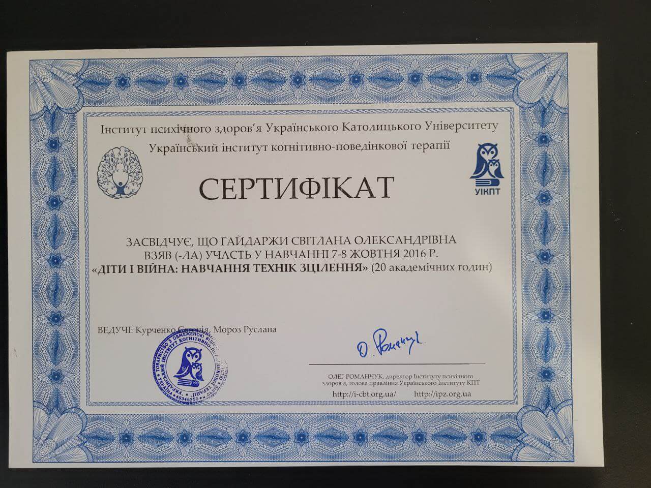 7-8 жовтня 2016, Кількість годин - 20