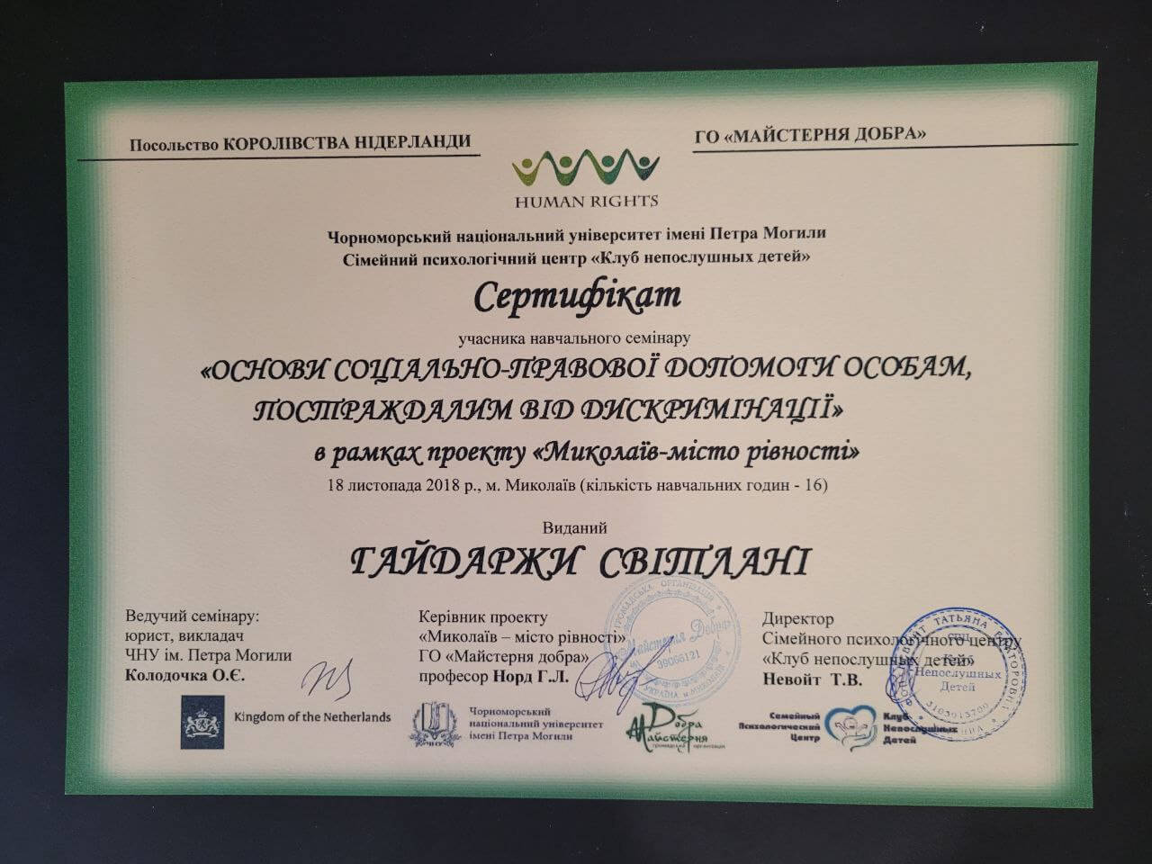 18 листопада 2018, Кількість годин - 16