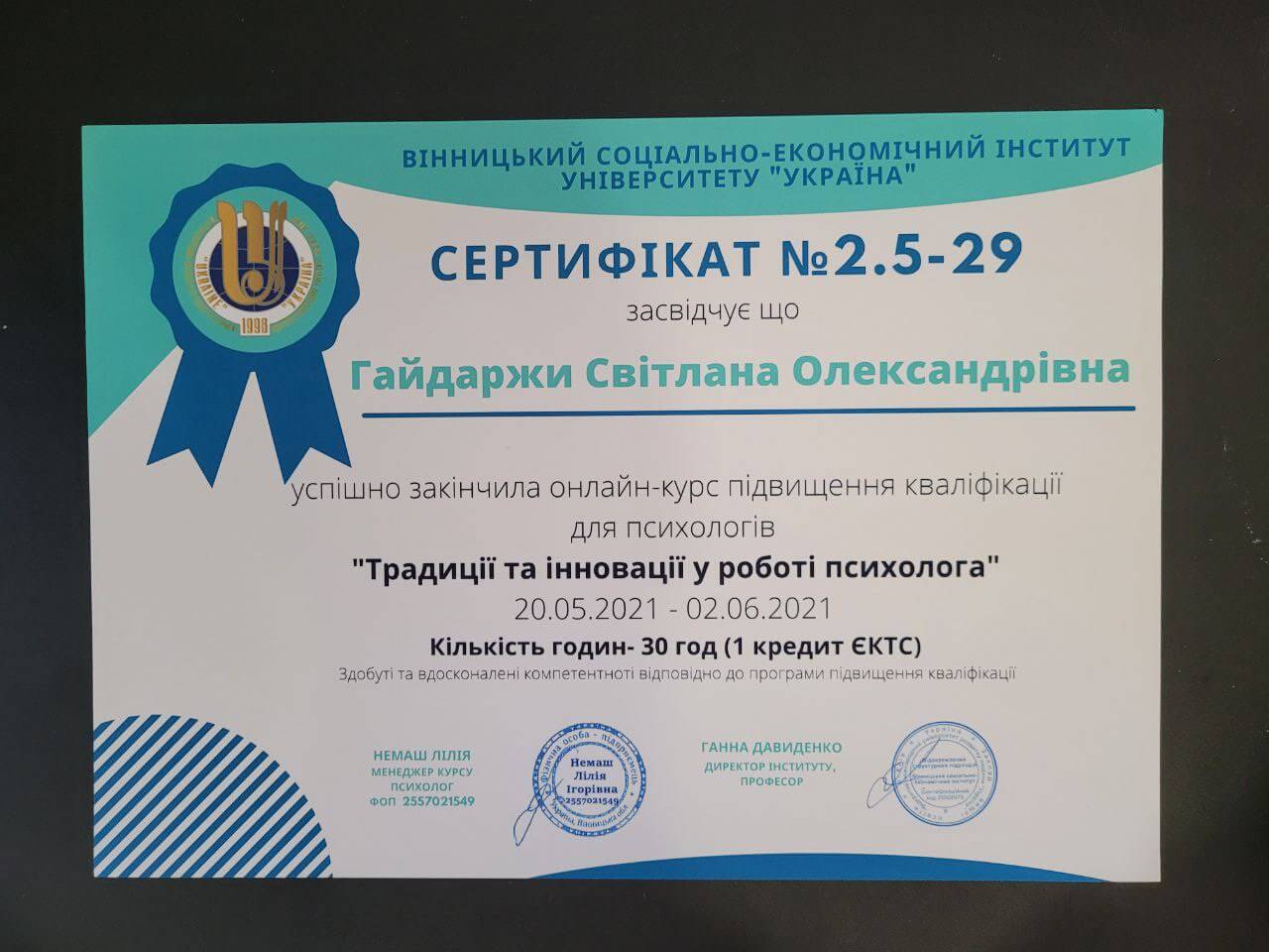 20.05.2021 - 02.06.2021, Кількість годин - 30