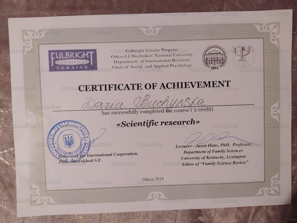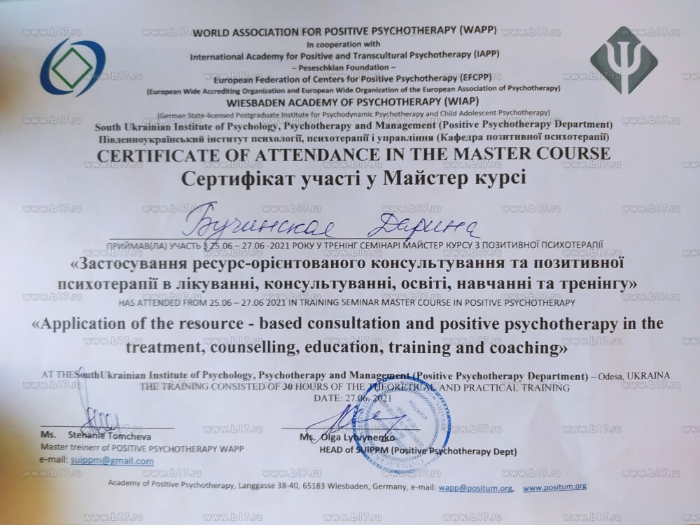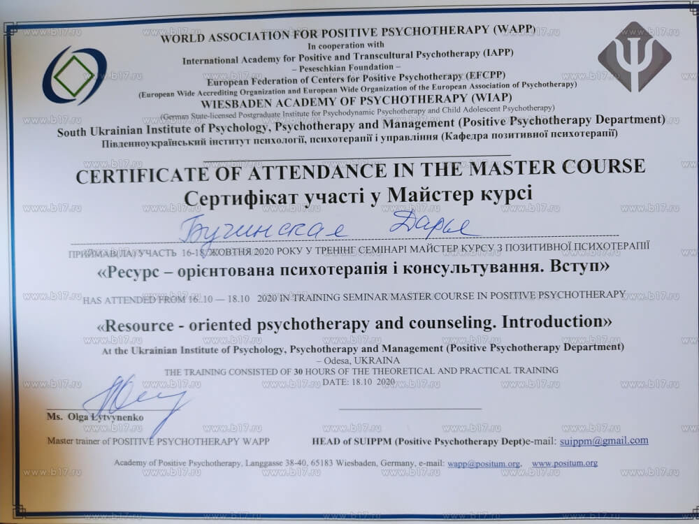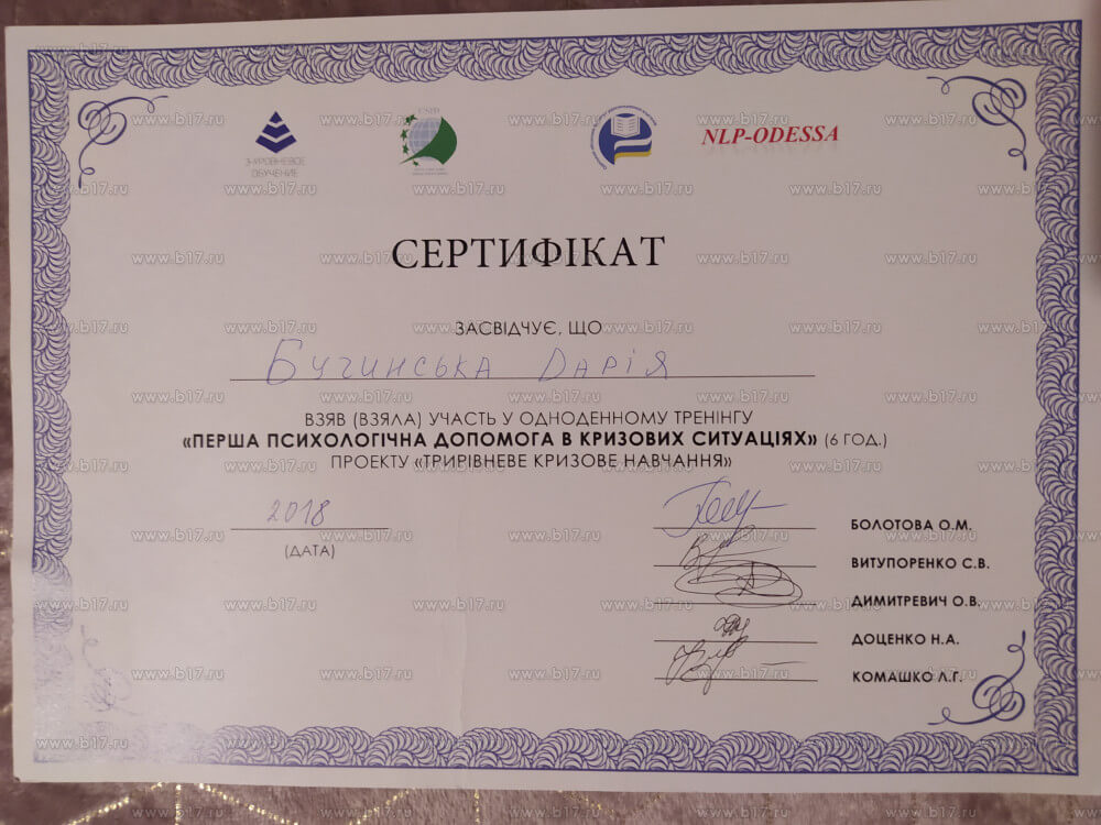 Курси підвищення кваліфікації за напрямом нейропсихології (ВНЗ ім. Мечникова);