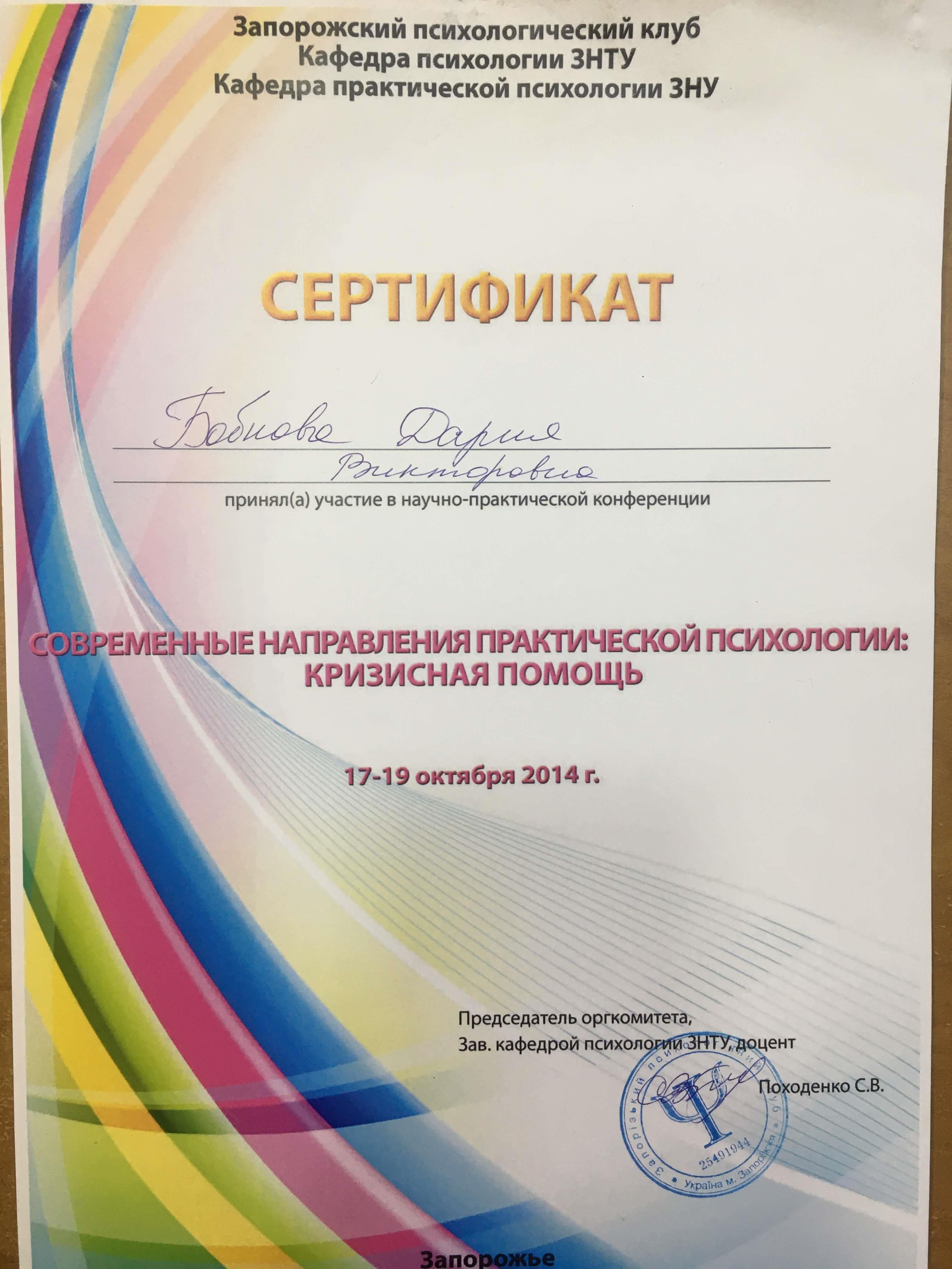 Мене звуть Дарія Бобкова. Я дипломований психолог, здобувала освіту в Україні та Європі, гештальт-терапевт у навчанні, веду клієнтську практику та авторські проекти.