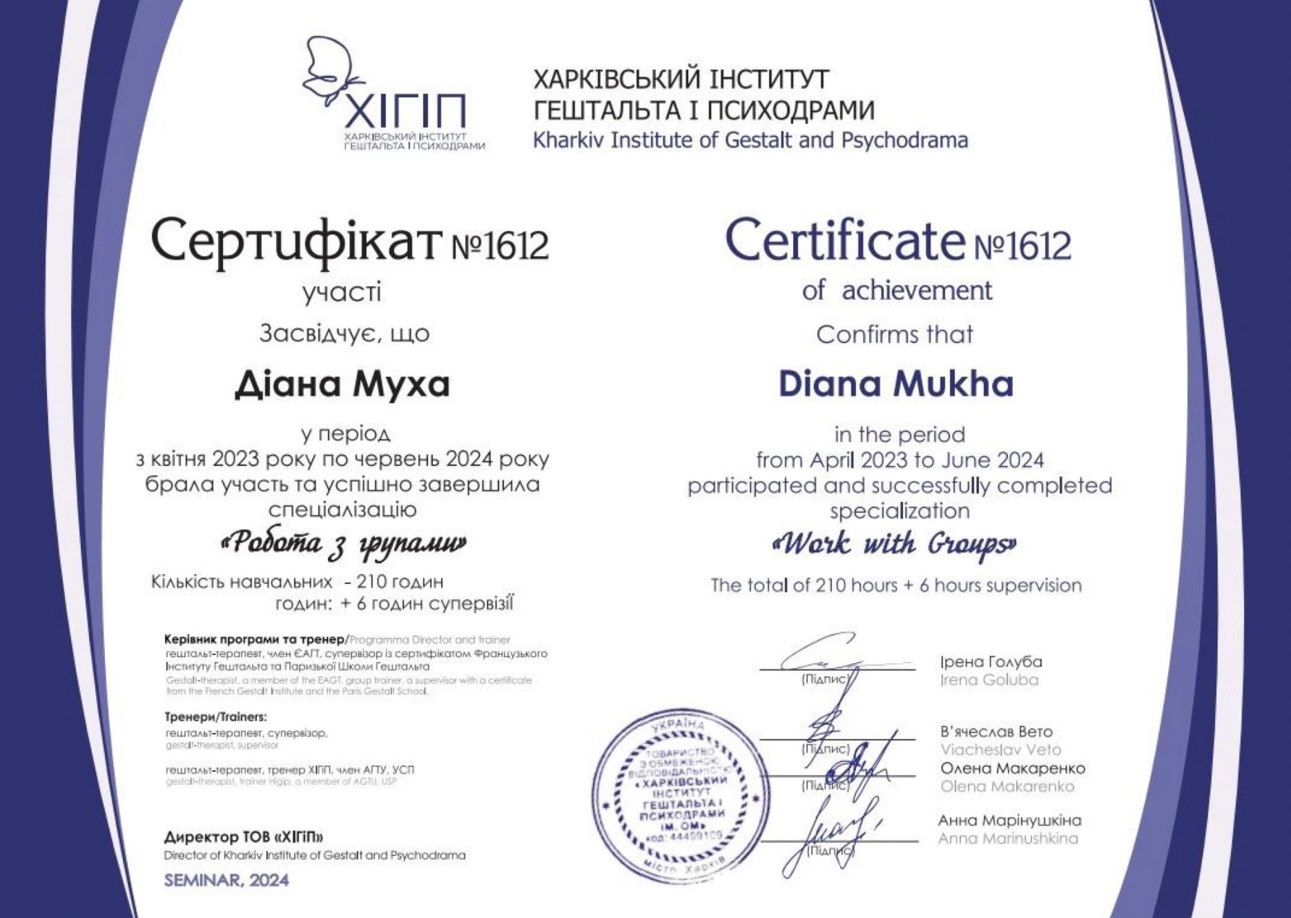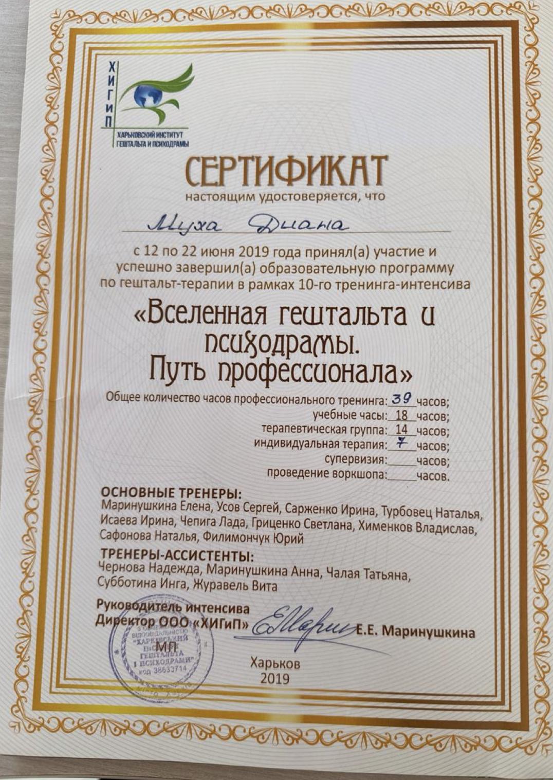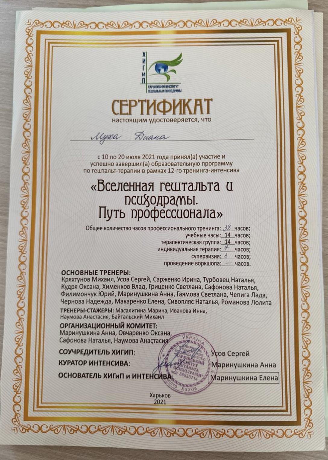 Мій професійний шлях у гештальт-підході почався в ХІГІП, де я пройшла перший ступінь навчання, а зараз завершую другий — сертифікаційну програму гештальт-терапевта. Залишилась лише сертифікаційна зустріч.