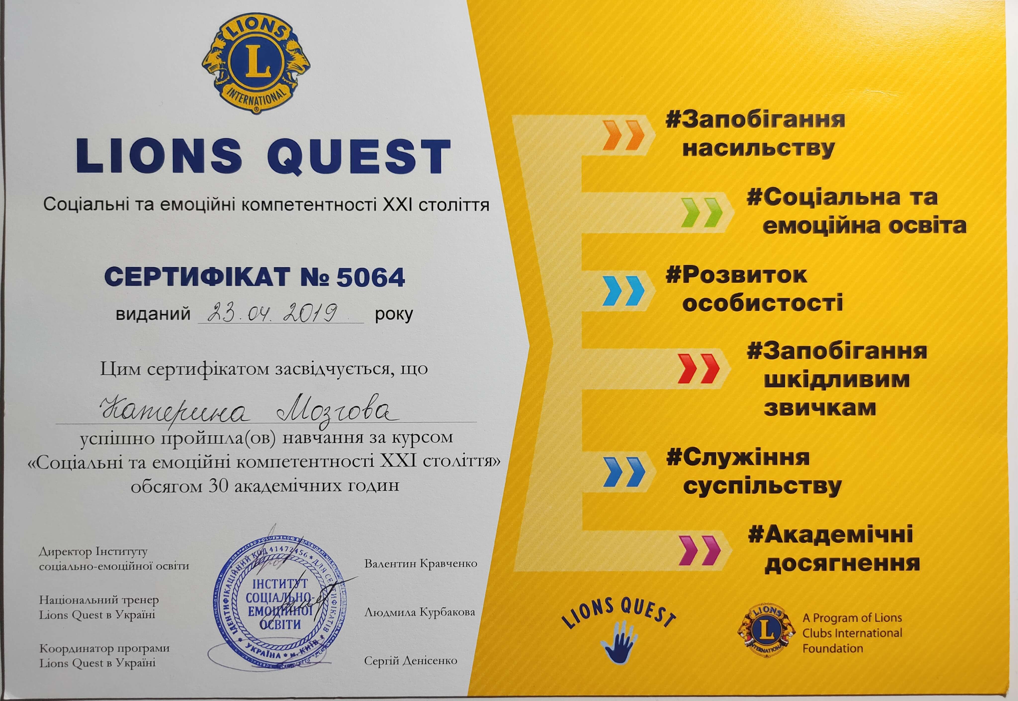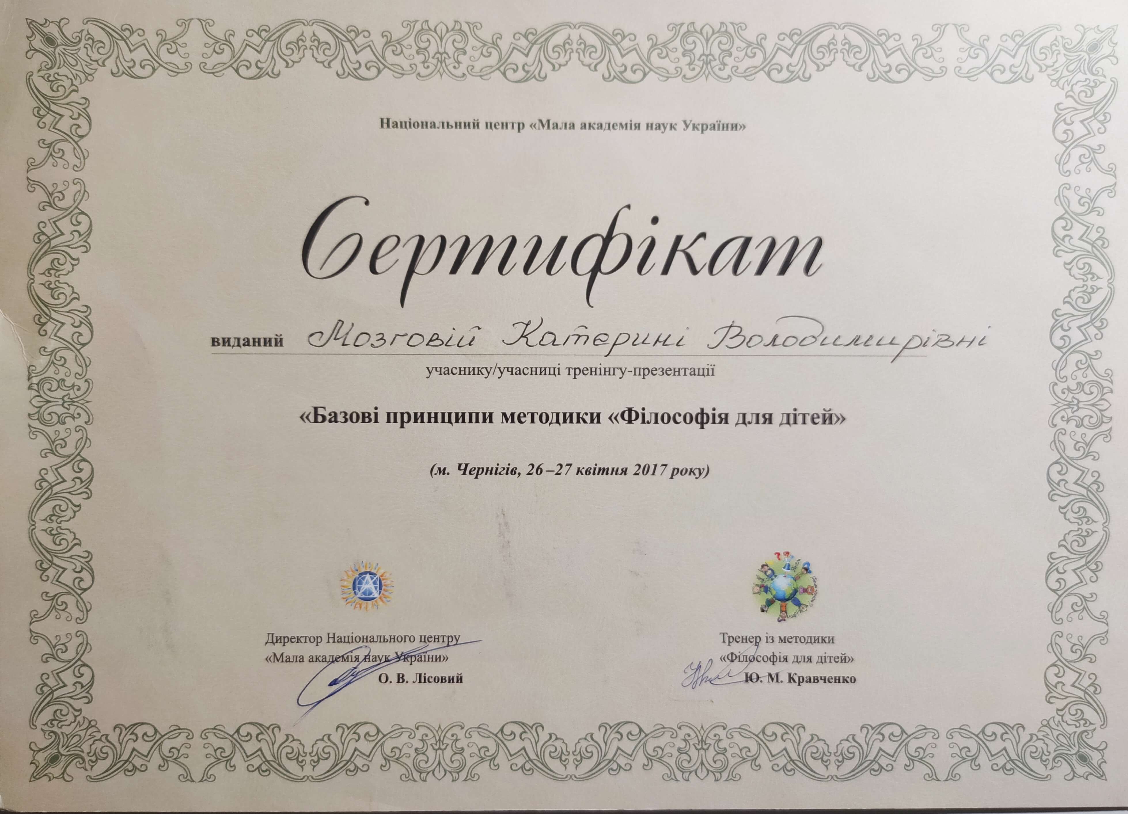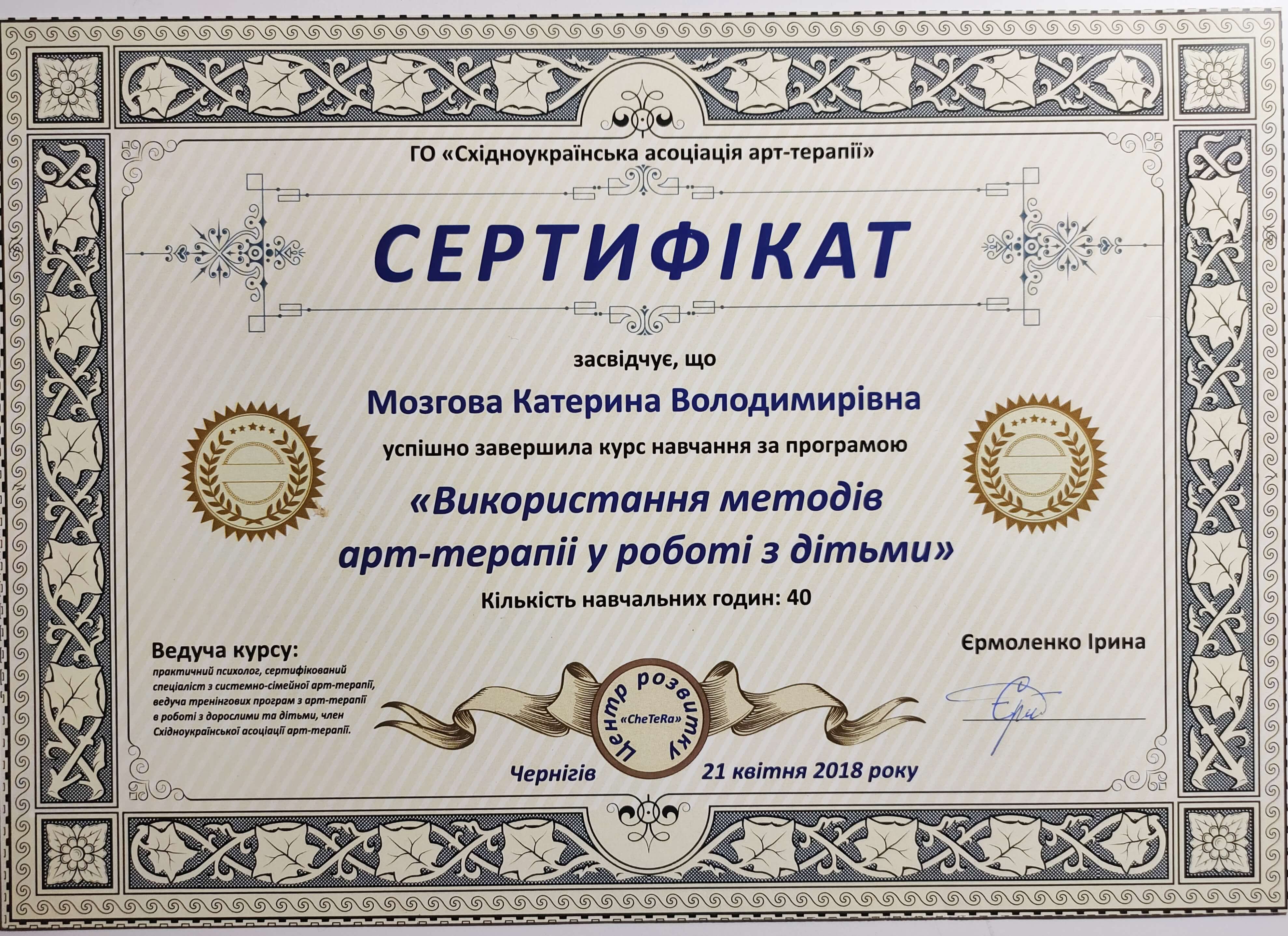 Сертифікати: