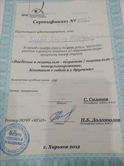Московський Інститут Гештальта та Психодрами: Гештальт-терапія II ступінь.