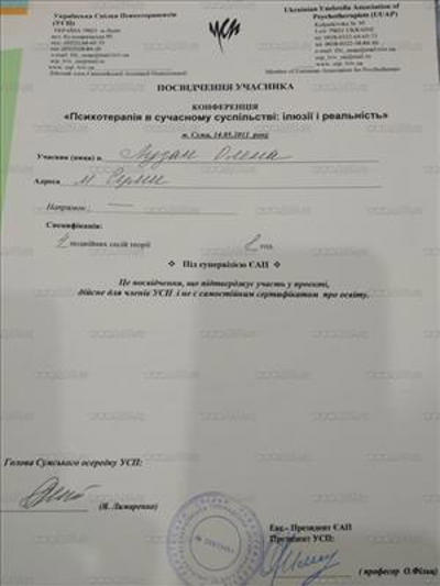 Психологія і психотерапія - це моє покликання, так я відчуваю, тому віддаюся справі чесно, жадібно вчуся, постійно проходжу особисту терапію і вдосконалюю себе. І це мені дуже подобається.