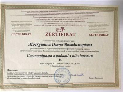 Постійно проходжу різноманітні курси підвищення кваліфікації, супервізії.