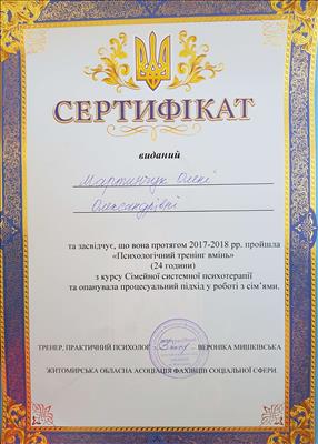 Магістр психології – університет ім. І. Франка, м. Житомир.