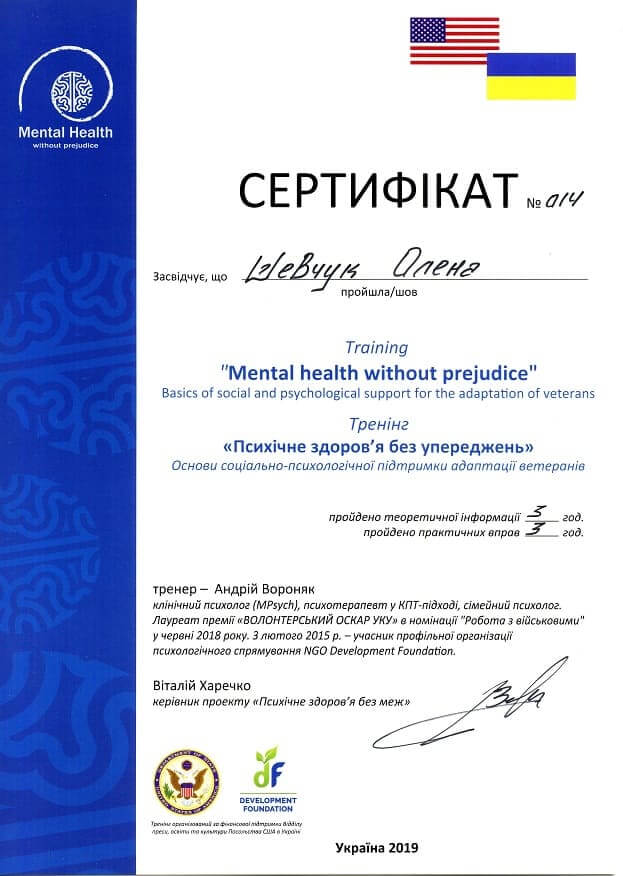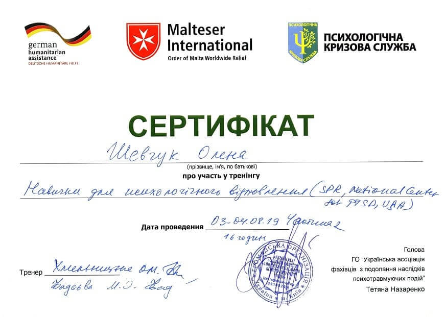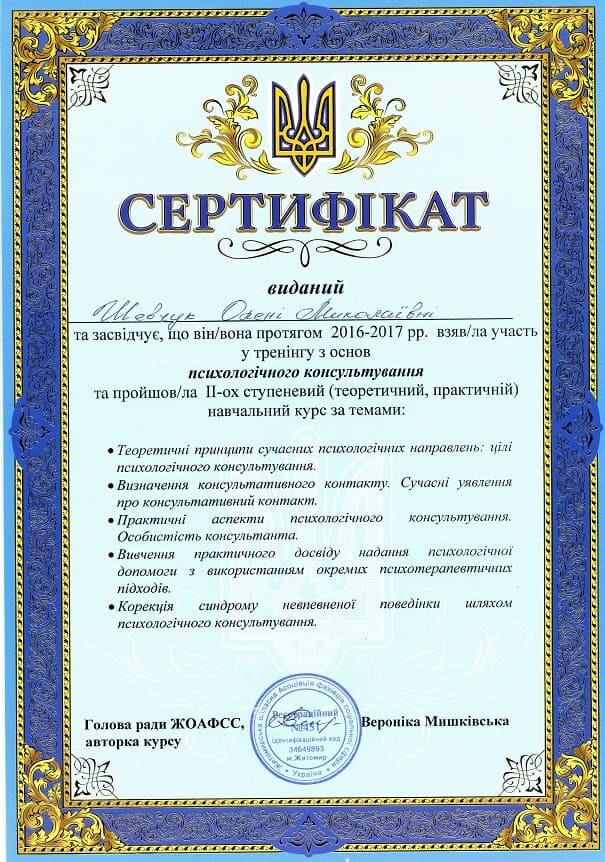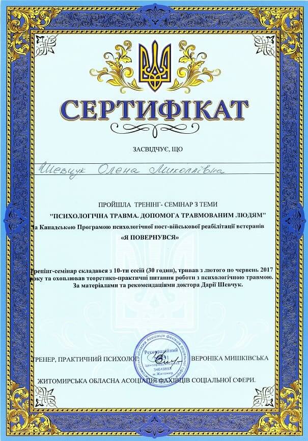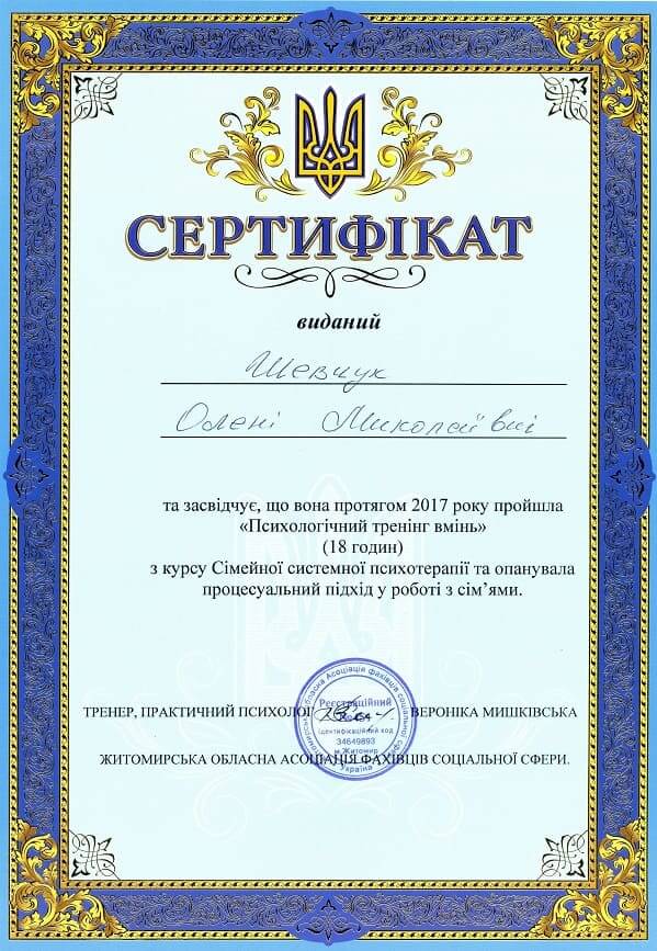 Сертифікати: