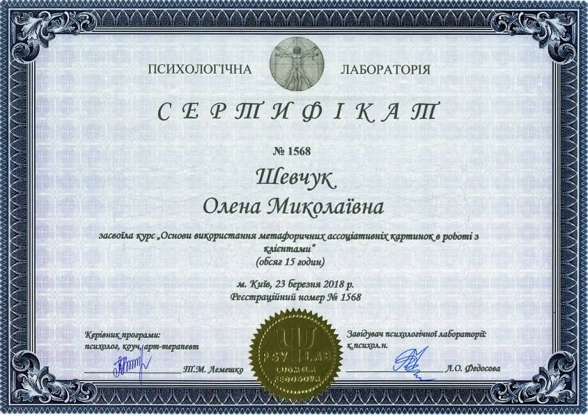 Постійно розвиваюсь у різних напрямках психології, відповідальна та уважна до своїх клієнтів. Емпатична. Люблю свою справу