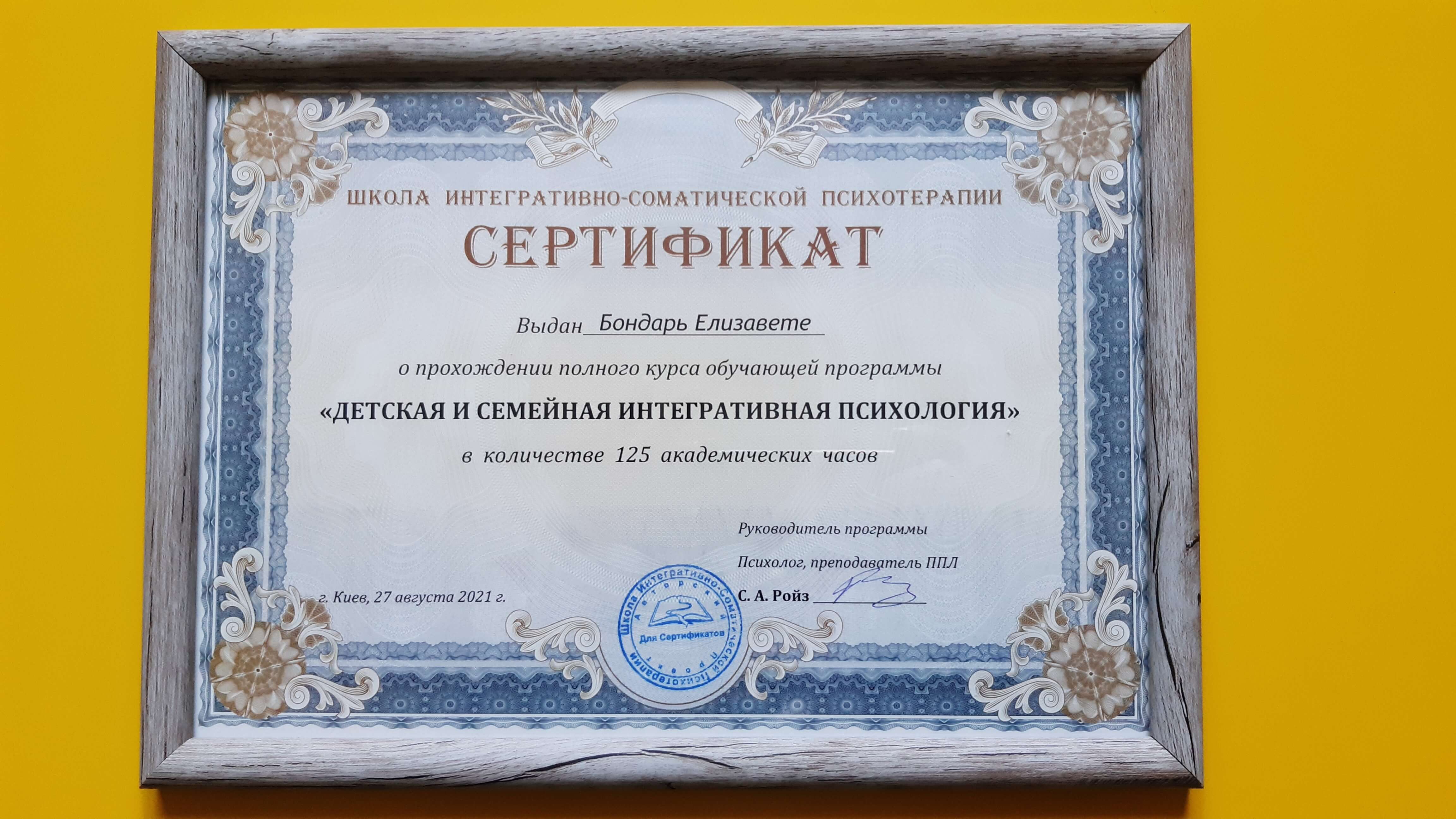 Психологічна студія Світлани Ройз, Дитяча та Сімейна інтегративна психологія, 125 годин, 2018-2021 р.
