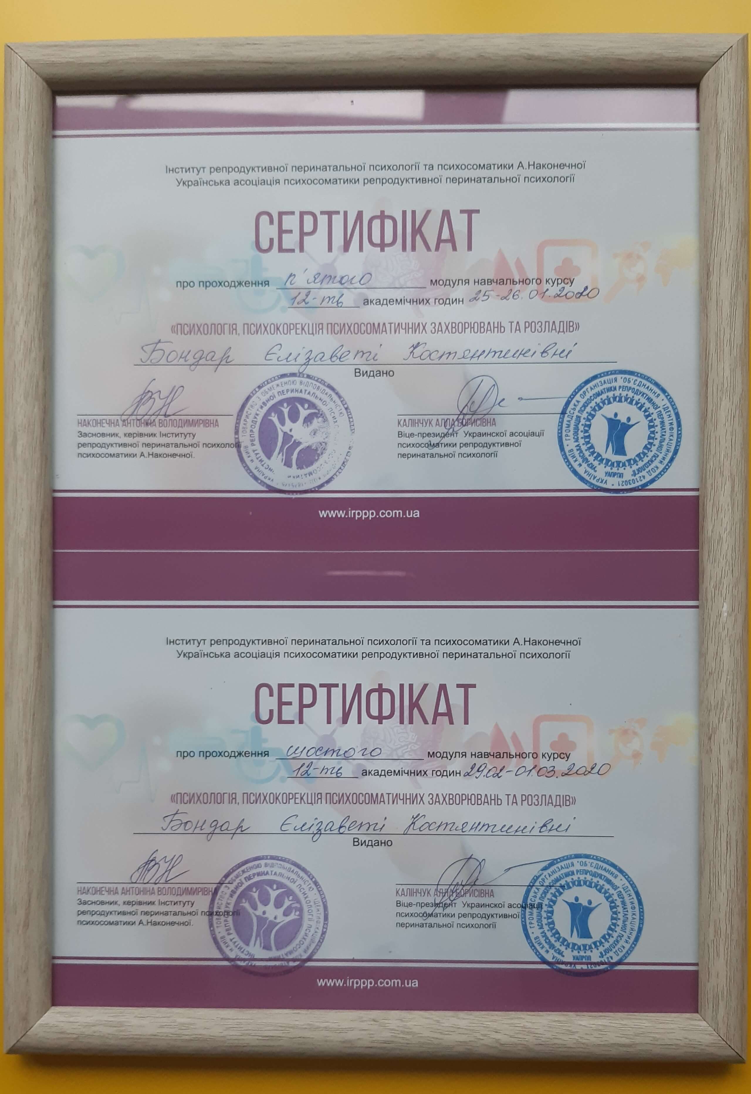 ІРПСШ, Психологія, психокорекція психосоматичних захворювань та розладів, 72 години, 2019-2020 р.