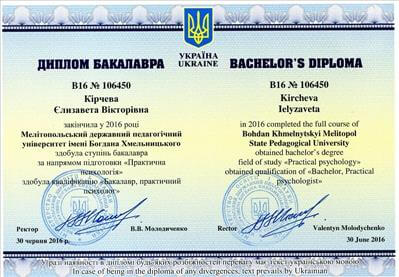 Мелітопольський державний університет ім. Б. Хмельницького – "Практична психологія".