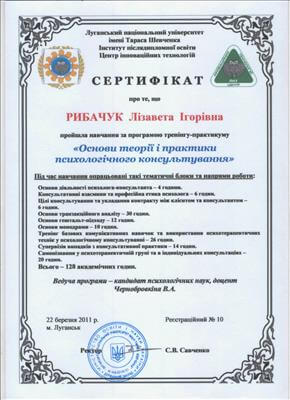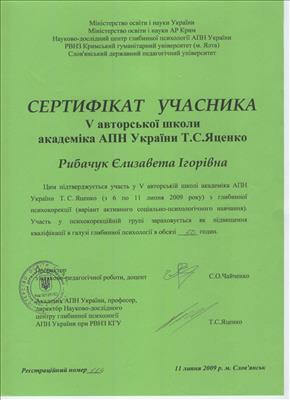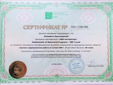 Пройдено сертифікаційну програму "Аутизм: корекційна робота на основі АВА", АВА-інструктор.