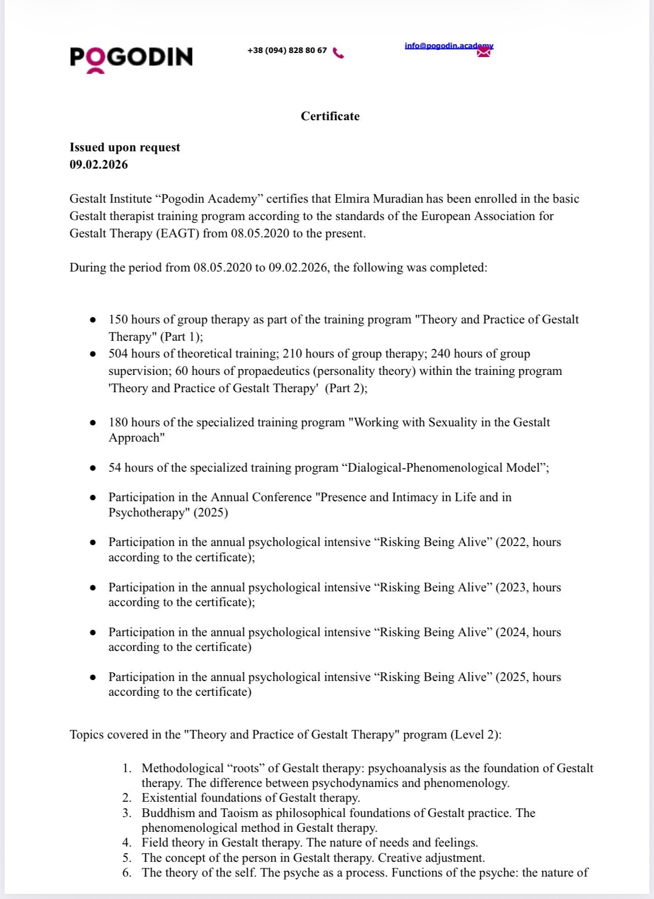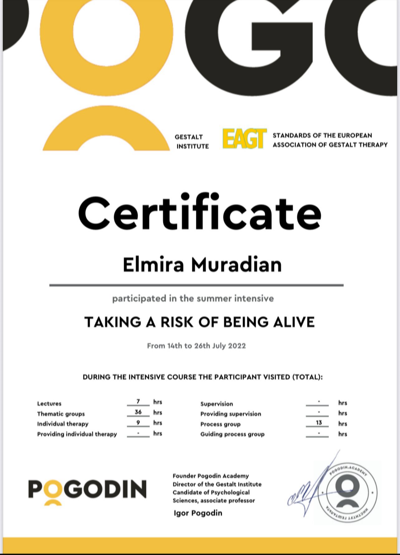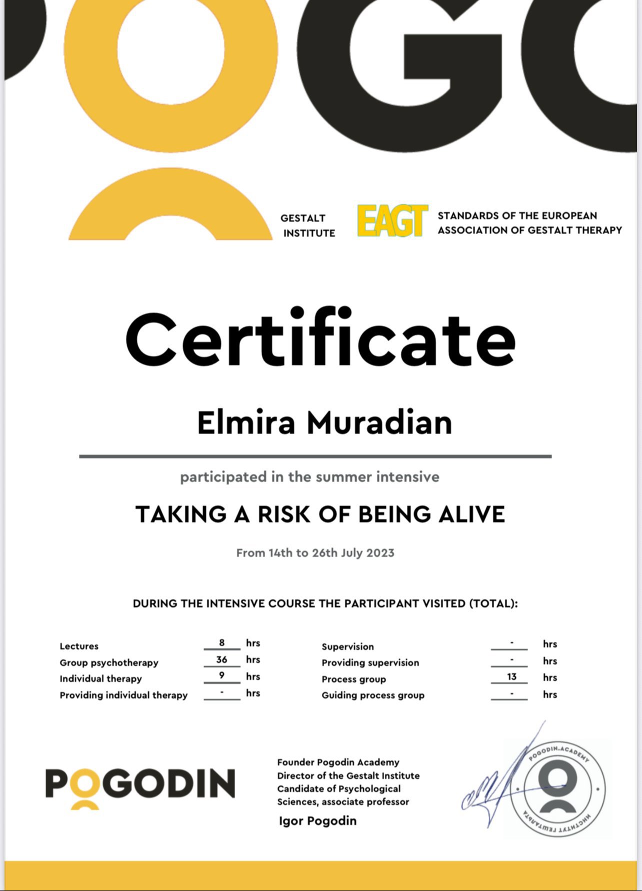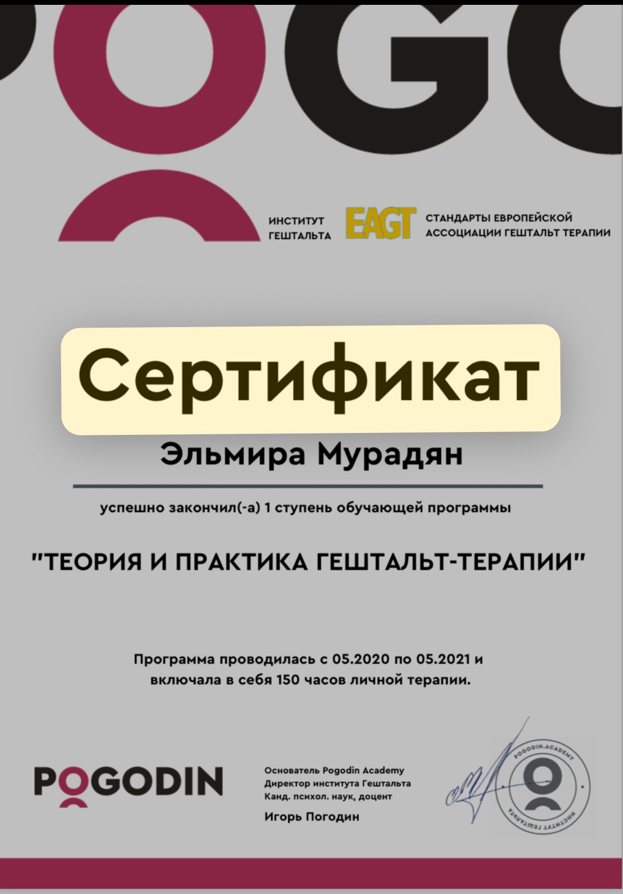 Академия Игоря Погодина 2 ступень . Сертифицированный гештальт терапевт