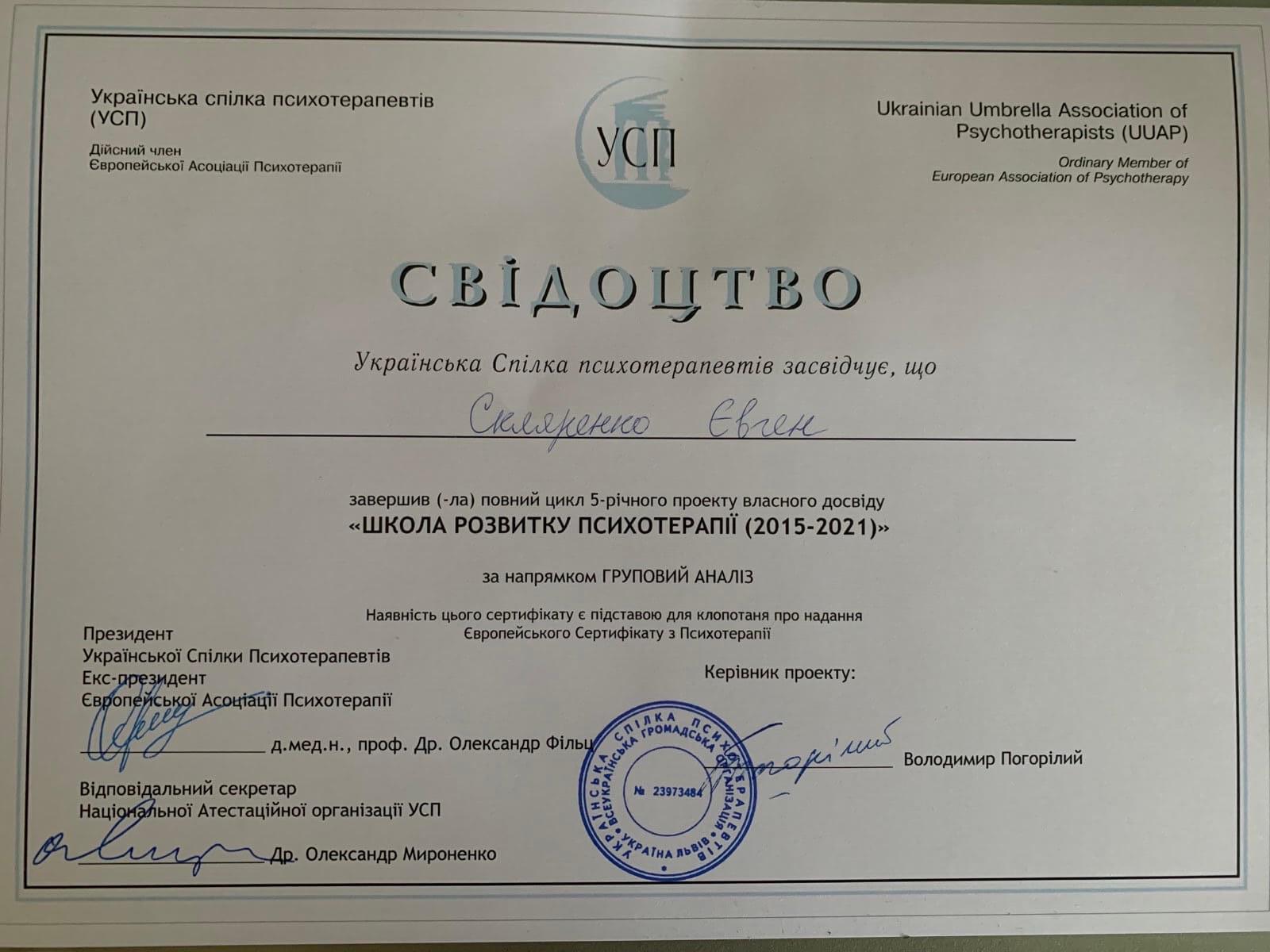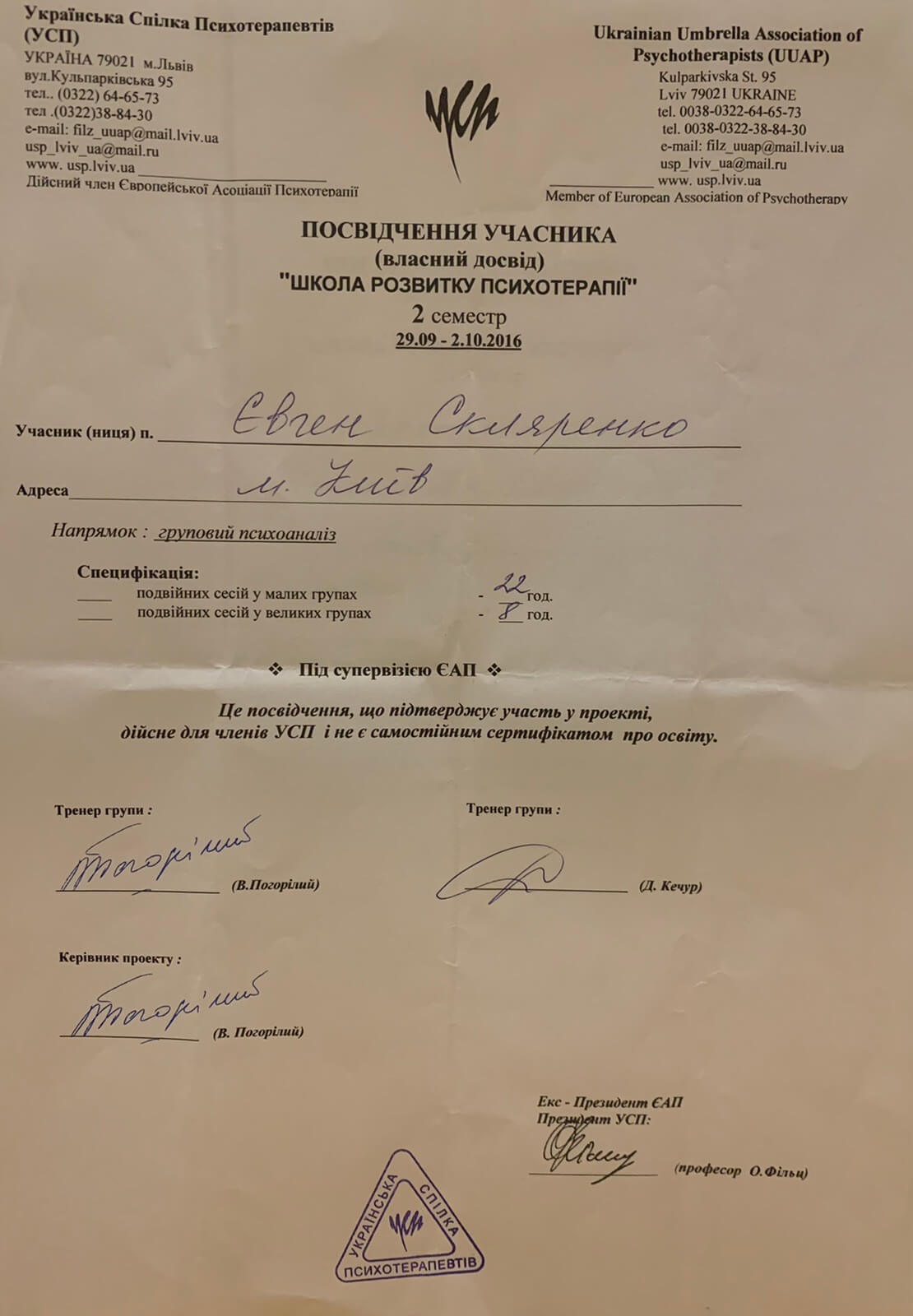 Український Психотерапевтичний Університет з 2018 - до н.