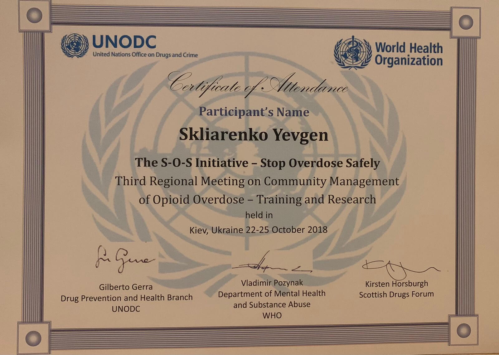 Понад 50 тренінгів у суміжних галузях коса, лікування та консультування людей груп ризику, профілактика та лікування соціально небезпечних захворювань таких як ВІЛ, Вірусні гематити, Туберкольоз