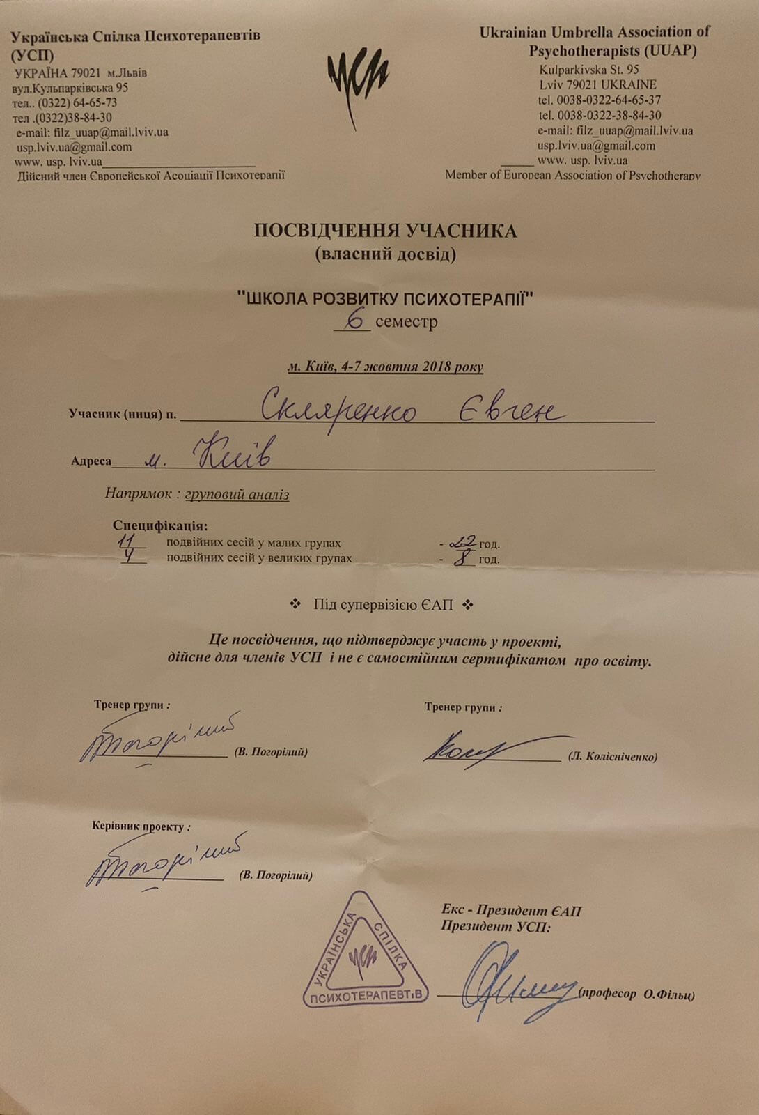 Член української спільноти психологів та психотерапевтів з 2018 року