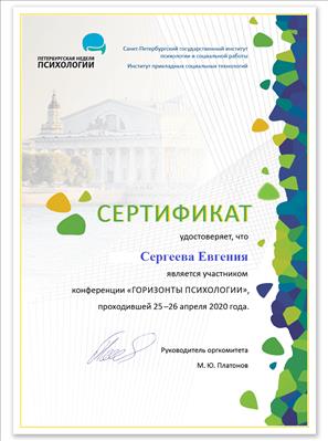 12. Була учасником онлайн-конференції для розвитку та просування психологів при інституті практичної психології "ЕРА": "Псі-експерт".