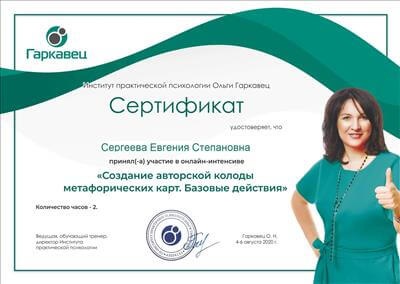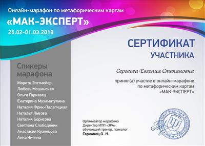 4. Була учасником онлайн-марафону з метафоричних карт при інституті практичної психології «ЕРА»: «Мак-експерт».