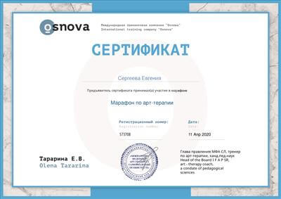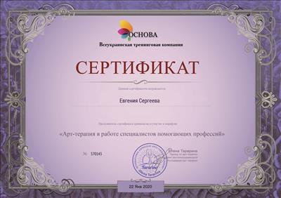 8. На базі Всеукраїнської тренінгової компанії брала участь в онлайн-марафоні: «Арт-терапія у роботі фахівців, які допомагають професій».