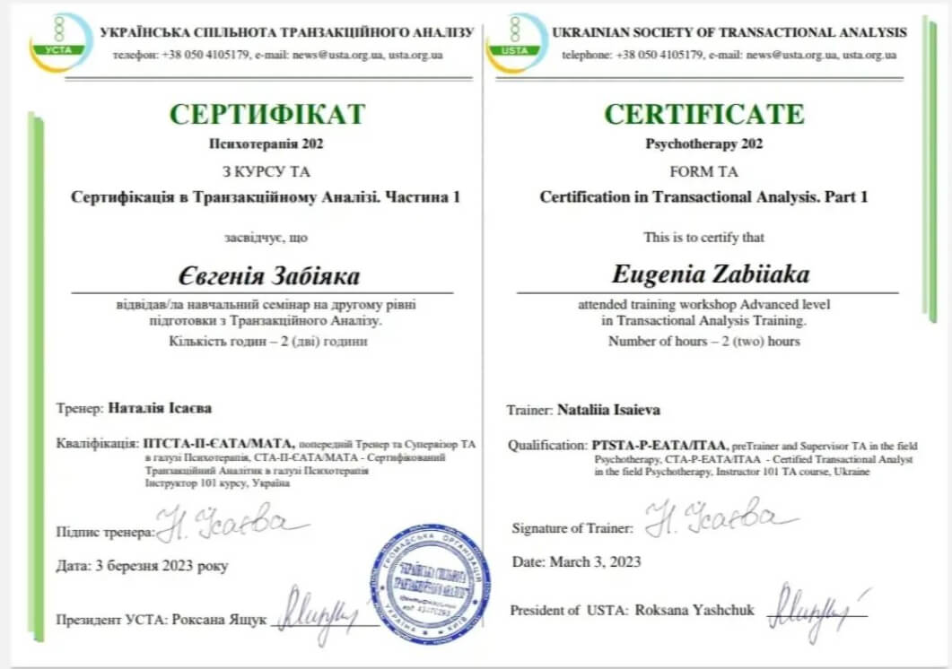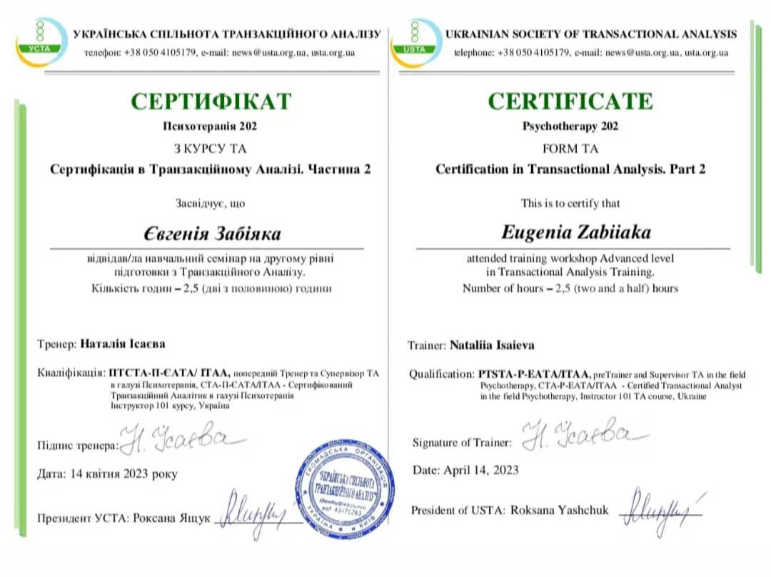 Сертифікація в Транзакційному Аналізі. Частина 2