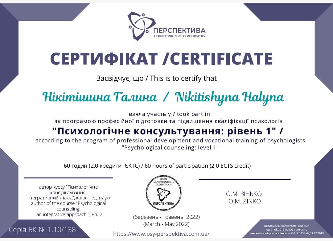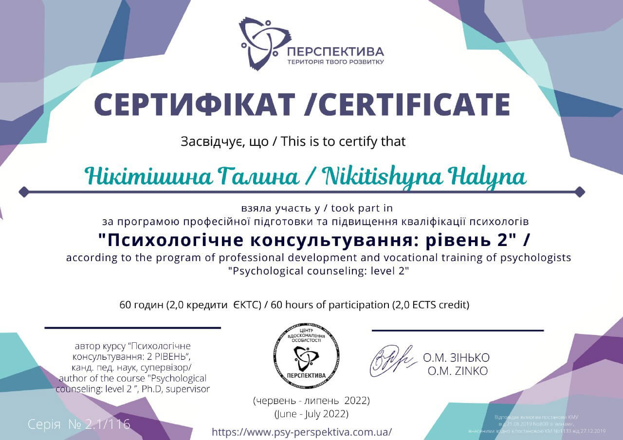 Спочатку психотерапія для мене була таємницею, закритими дверима до світу свого "я". Однак в процесі засідань з психотерапевтом я відкривала перед собою нові аспекти своєї особистості, які раніше залишалися прихованими. Ця подорож була іноді важкою, але завжди цінною, адже завдяки психотерапії я почала краще розуміти свої власні переживання, мотивації та відносини з іншими людьми.