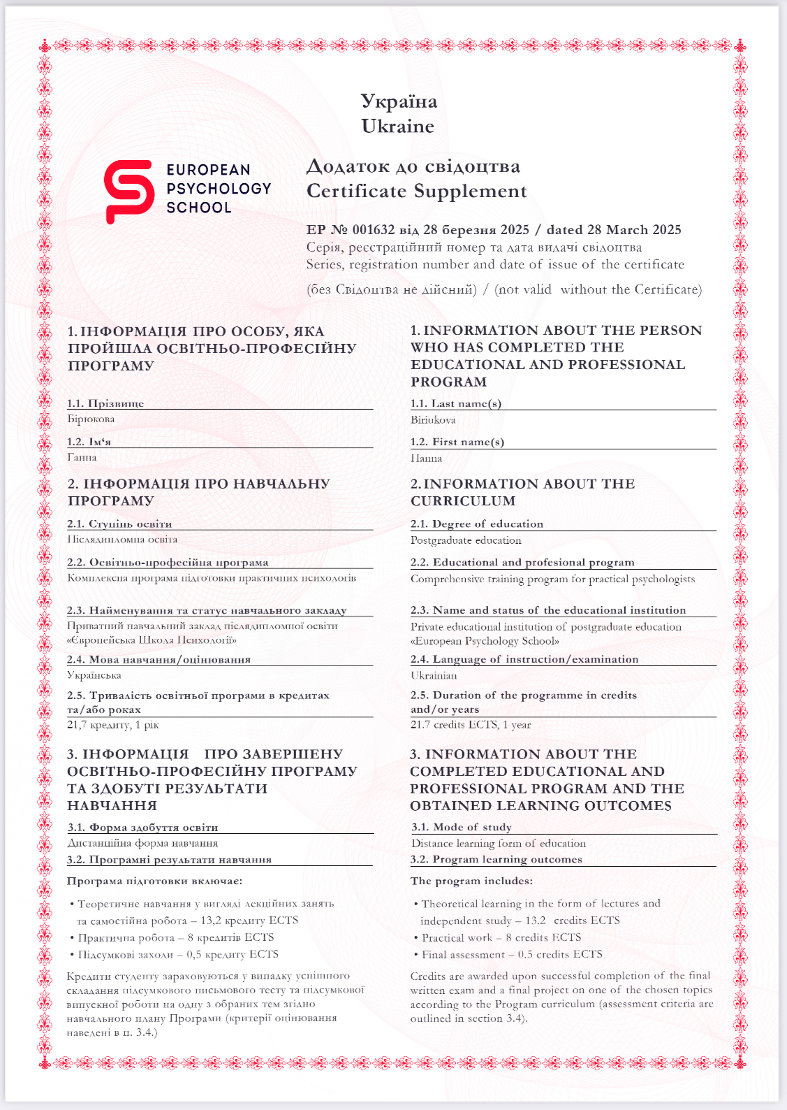 Європейська Школа Психології Комплексна програма підготовки практичних психологів