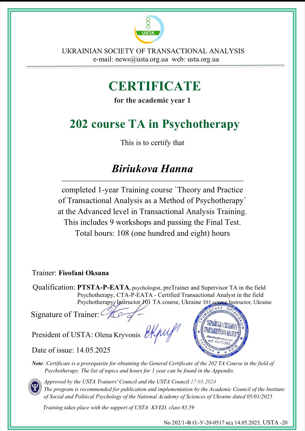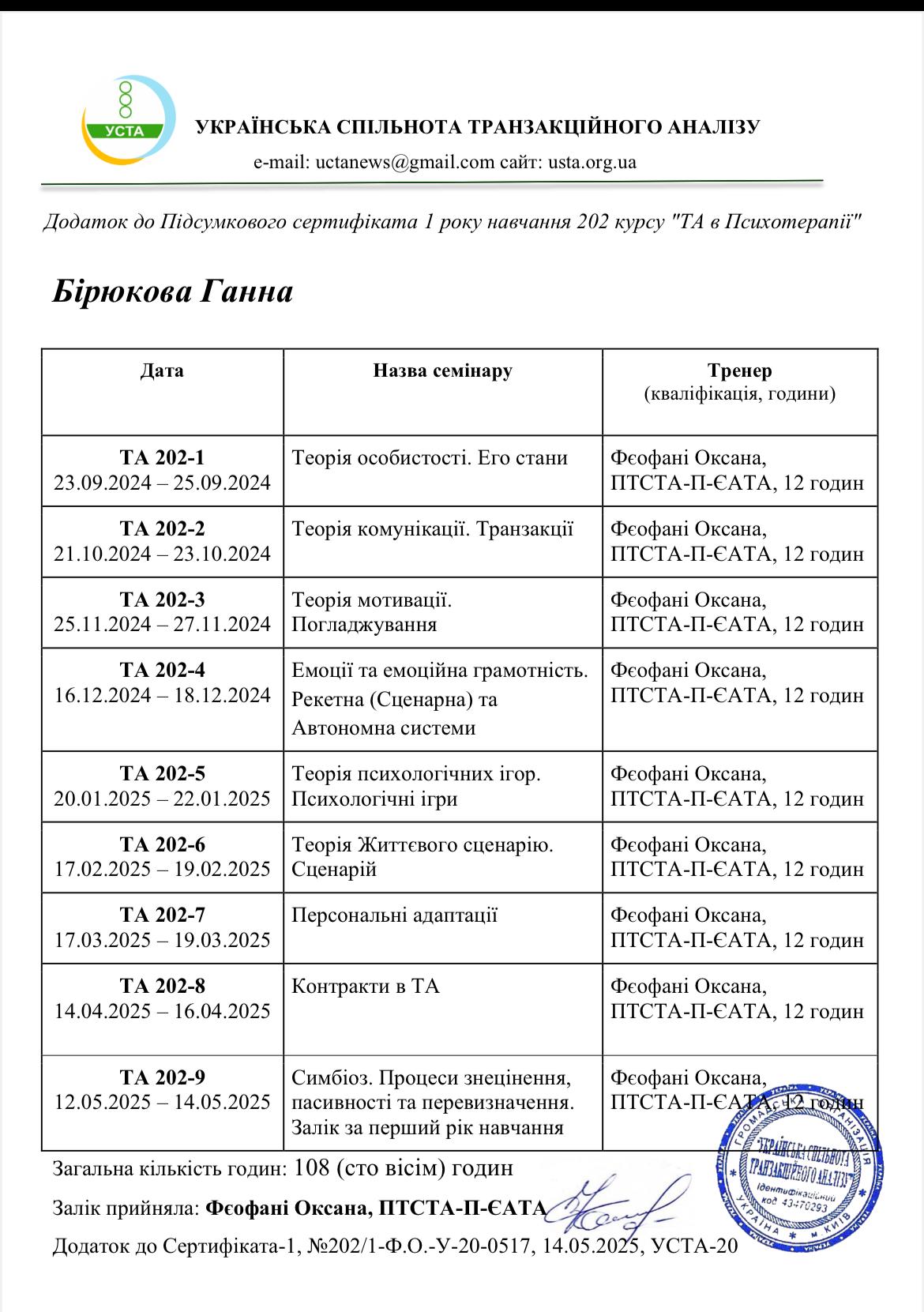 Теорія та практика Транзакційного Аналізу 202 курс ТА в психотерапії 1 рік навчання