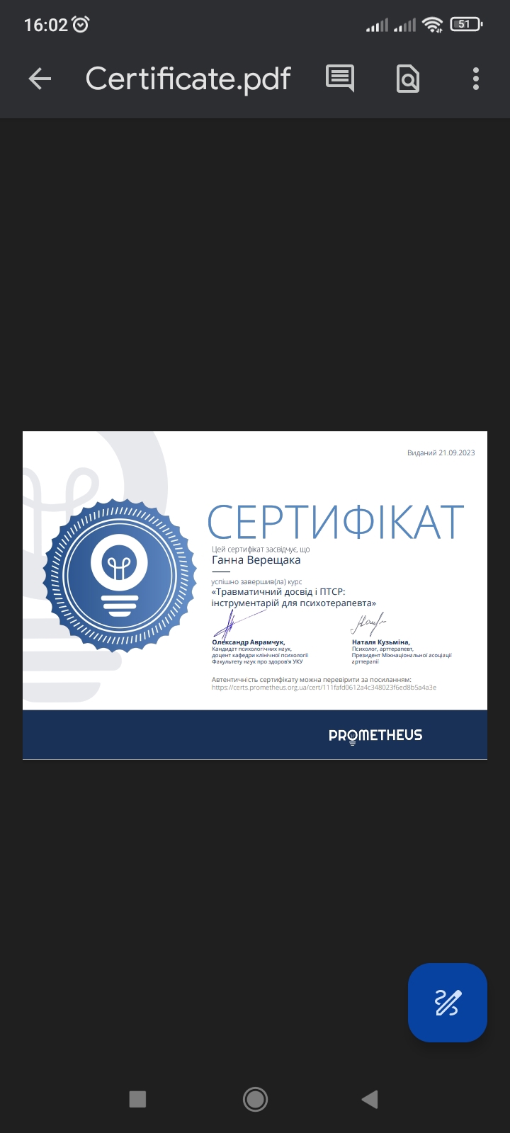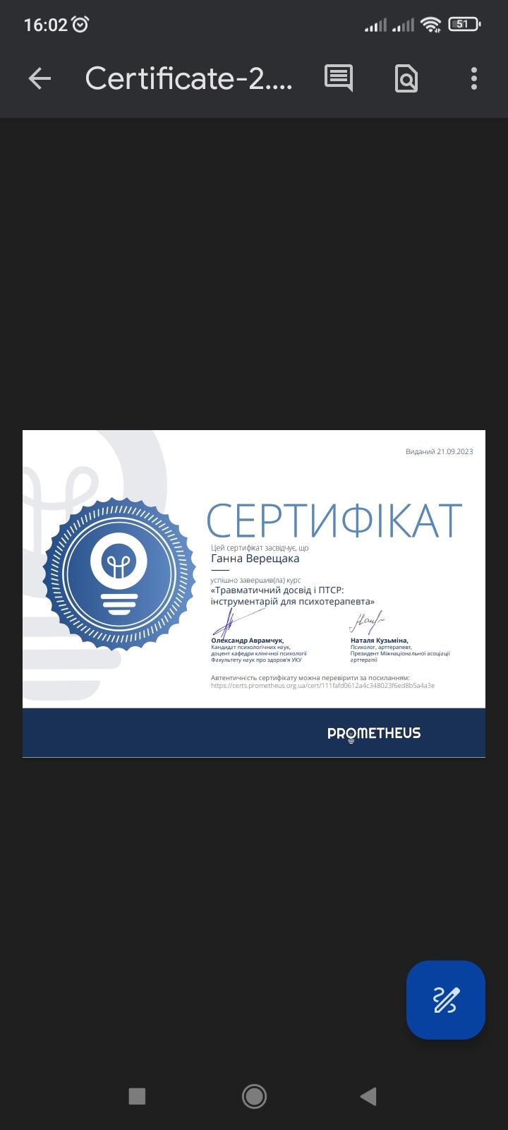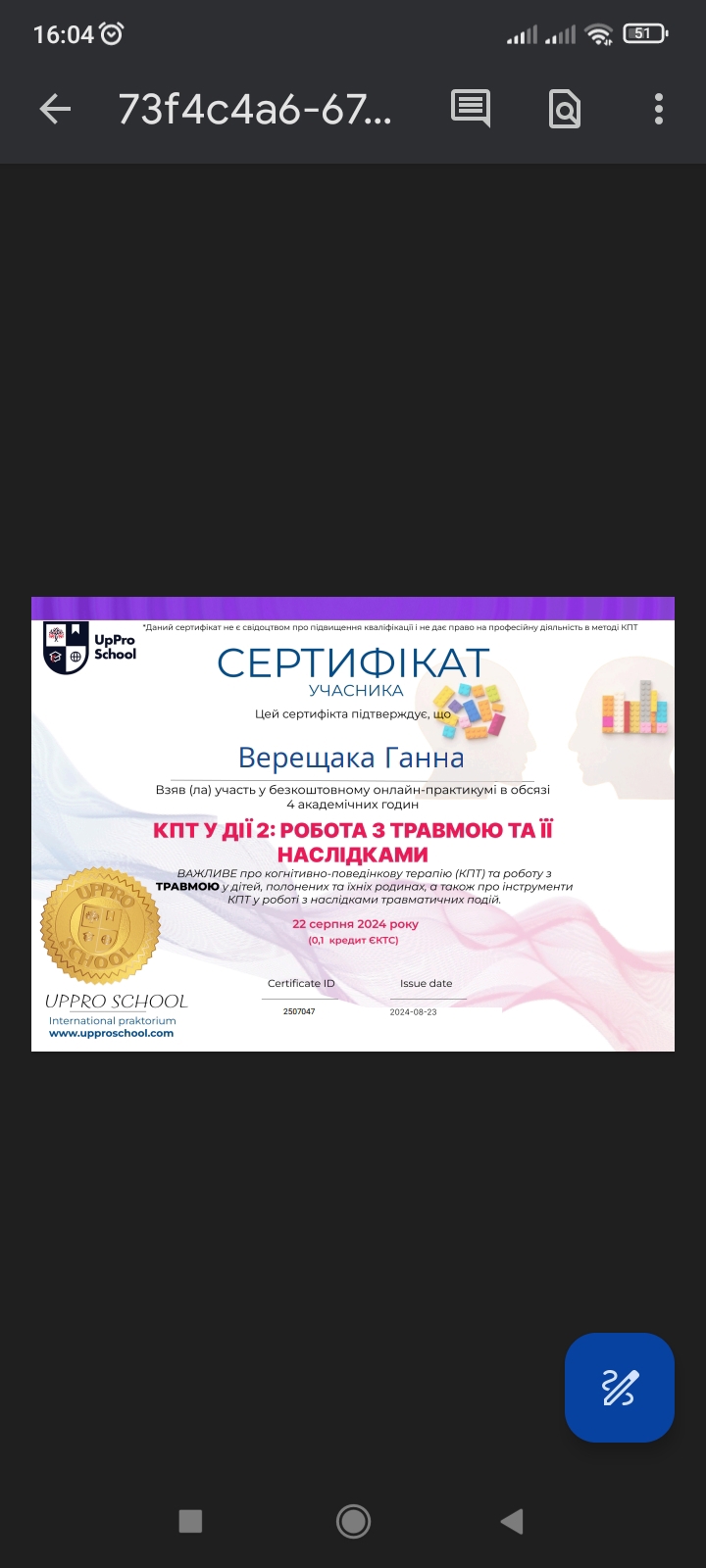 Сертифікати: