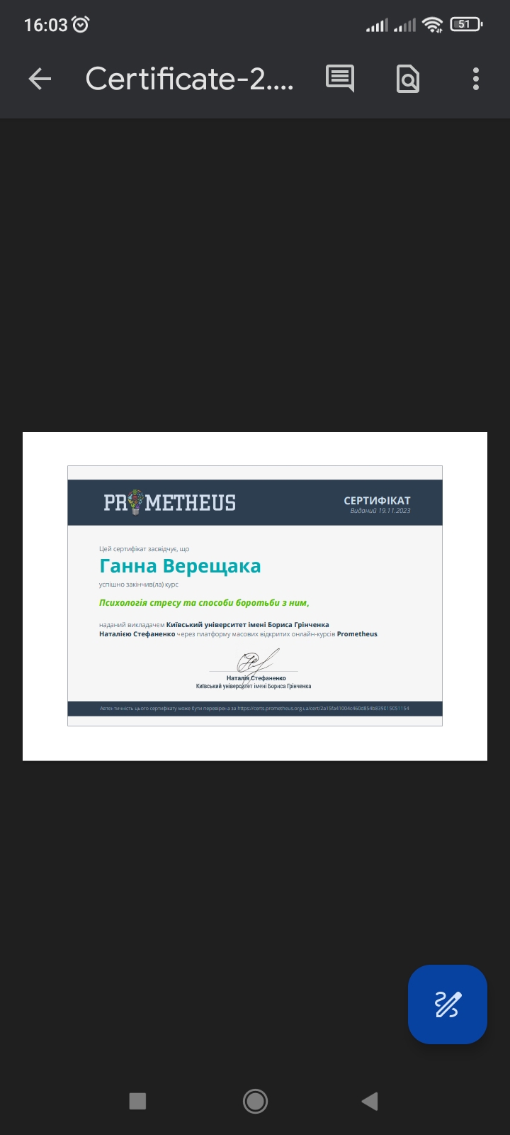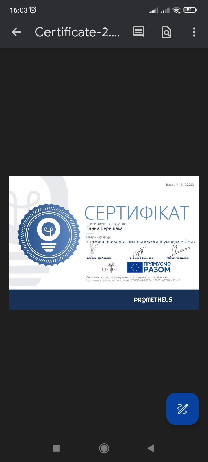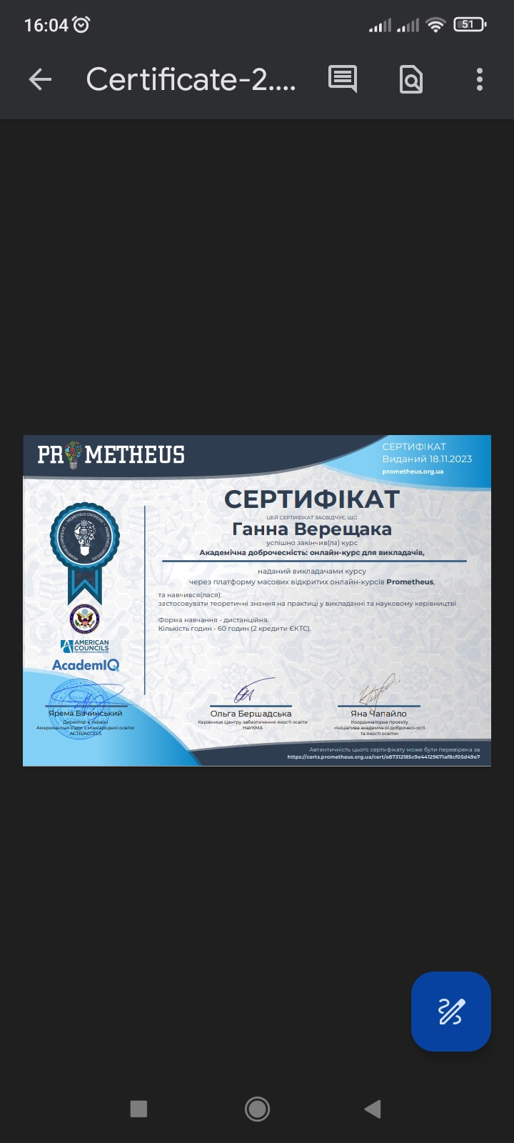 Сертифікати: