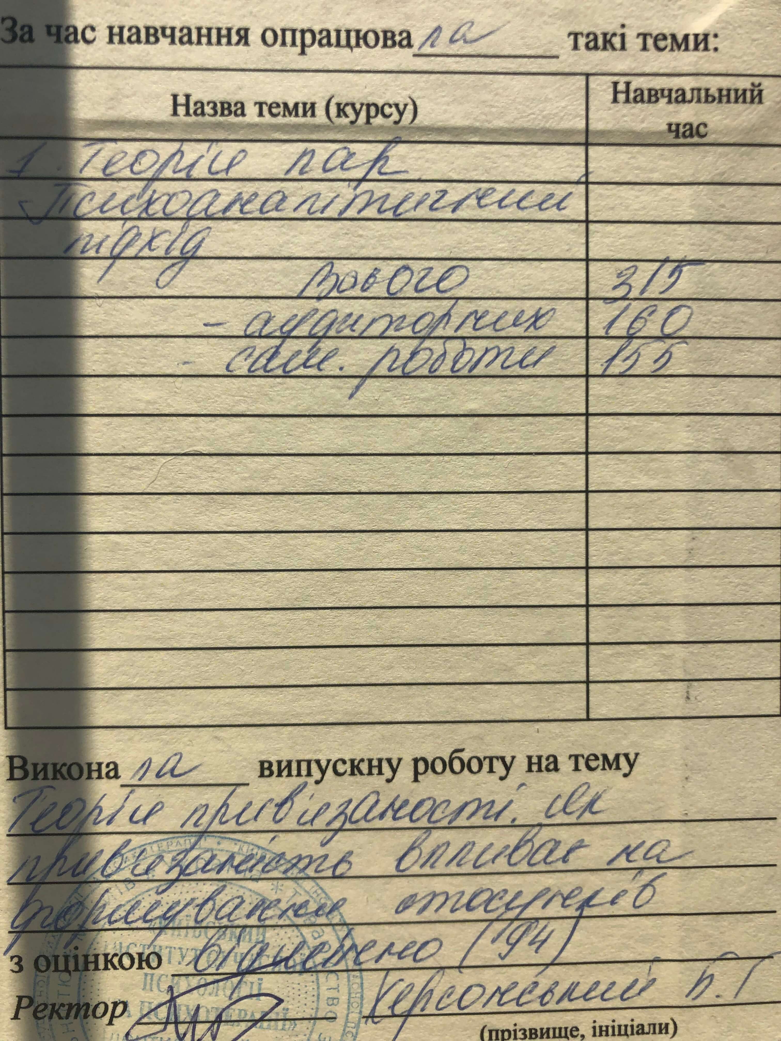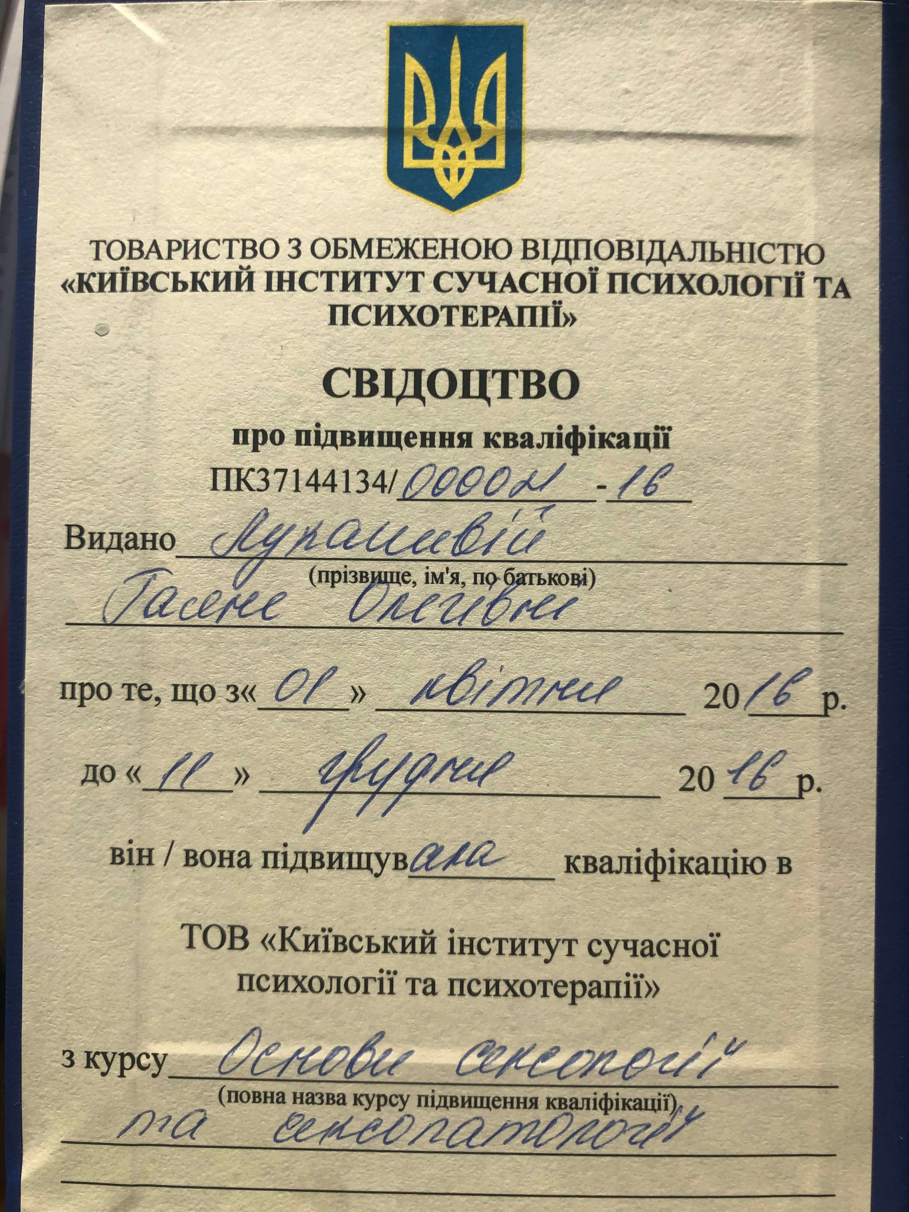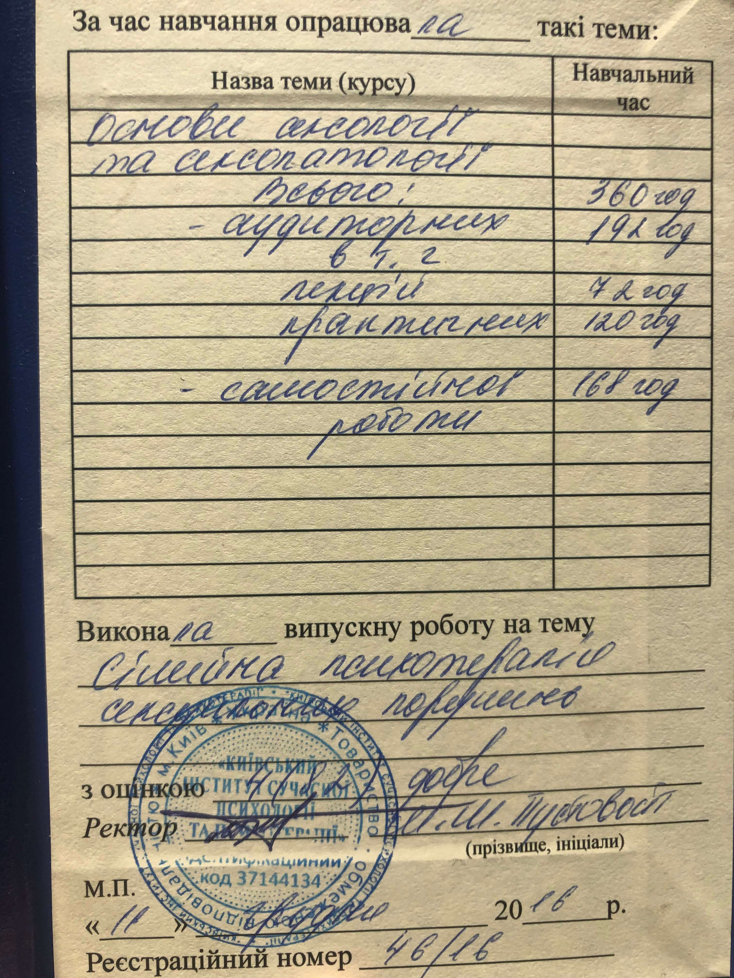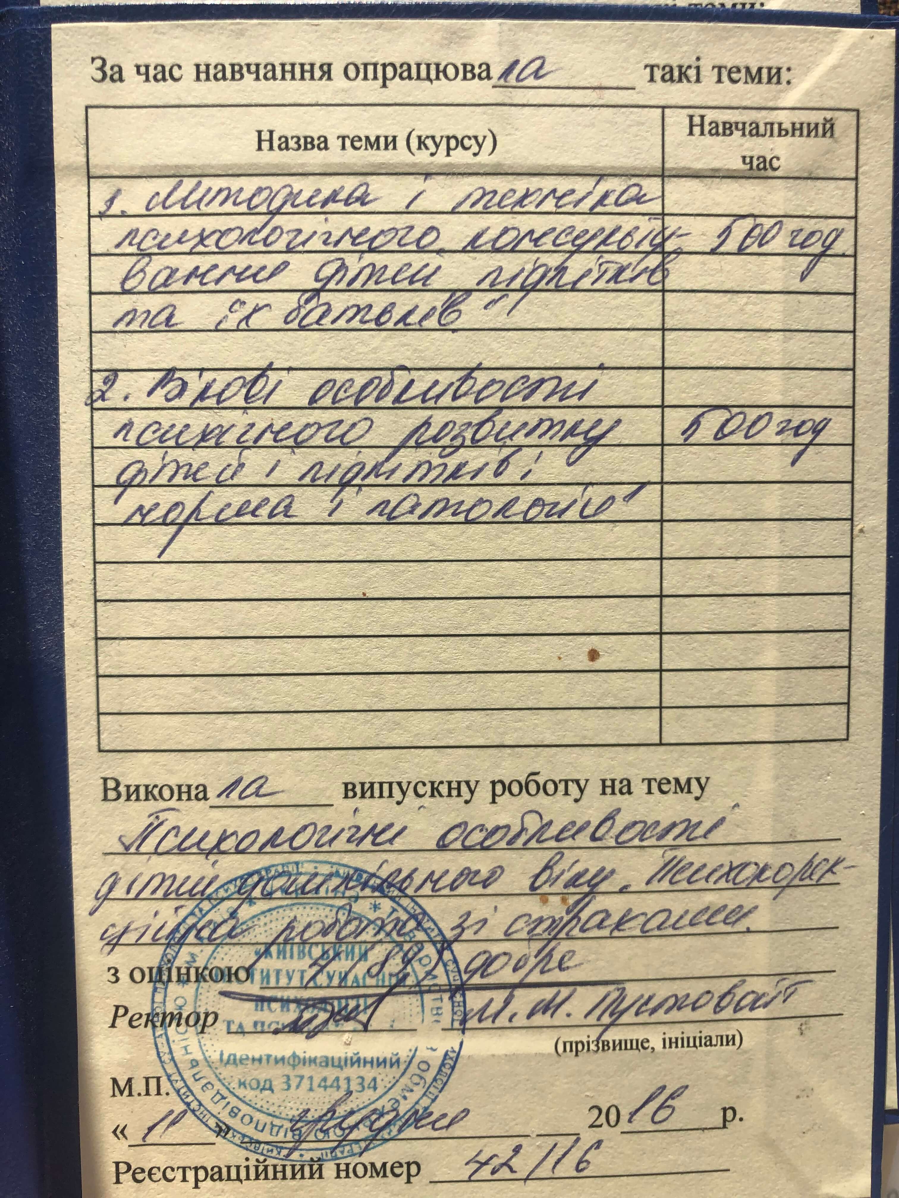 – Університет ім. Т.Г. Шевченка «Психологія»;