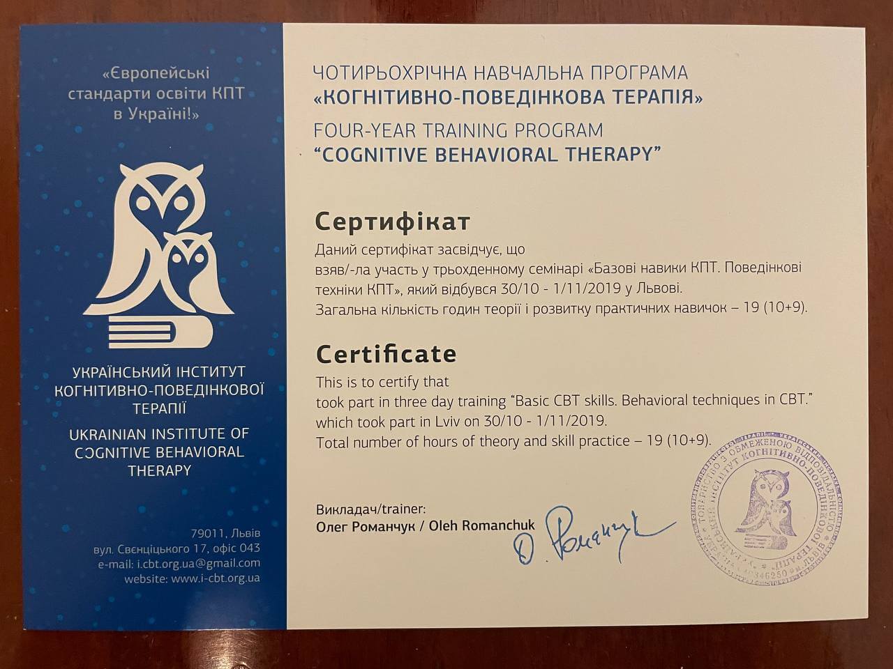 Як фахівець, емпатійний, у роботі враховую індивідуальні особливості кожної людини та використовую перевірені, емпірично обґрунтовані методики.